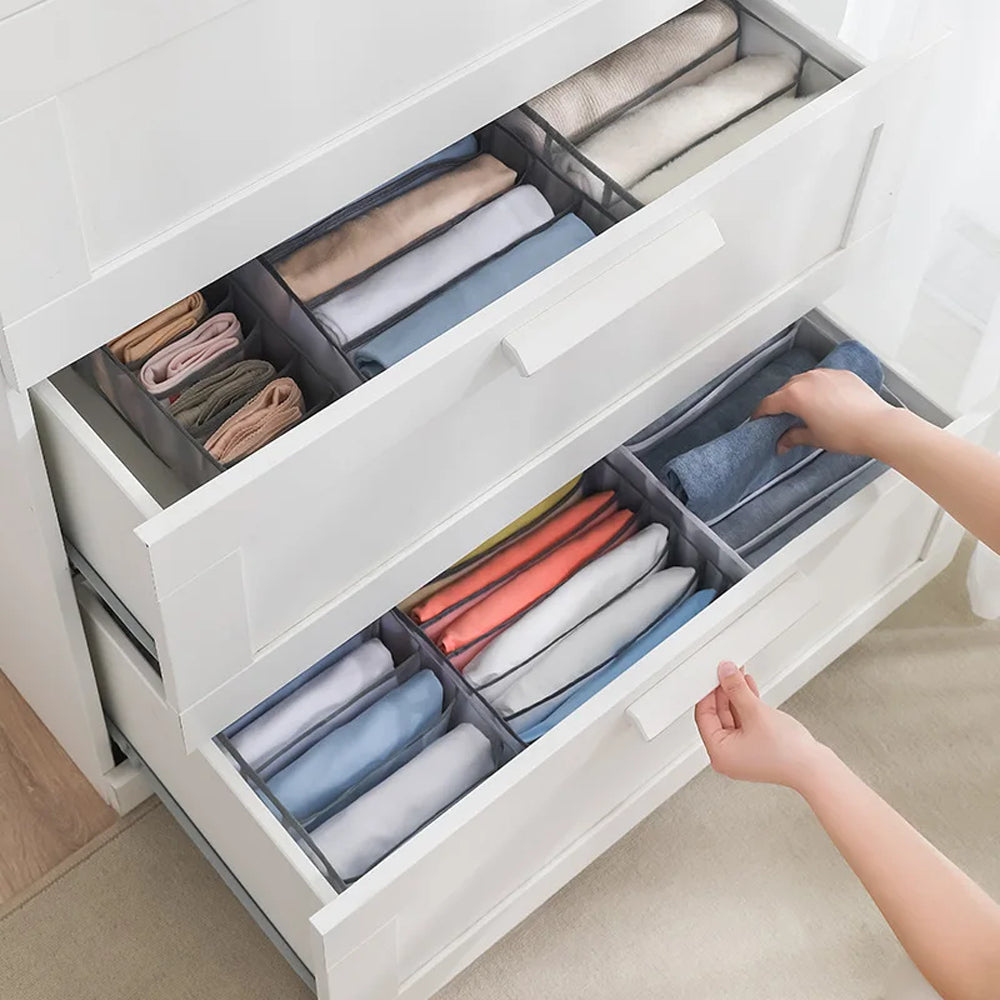 Набір включає органайзери різних розмірів, що дозволяє вам зберігати білизну, шкарпетки, краватки, біжутерію та інші дрібні предмети одягу відповідно до їх розміру та типу.