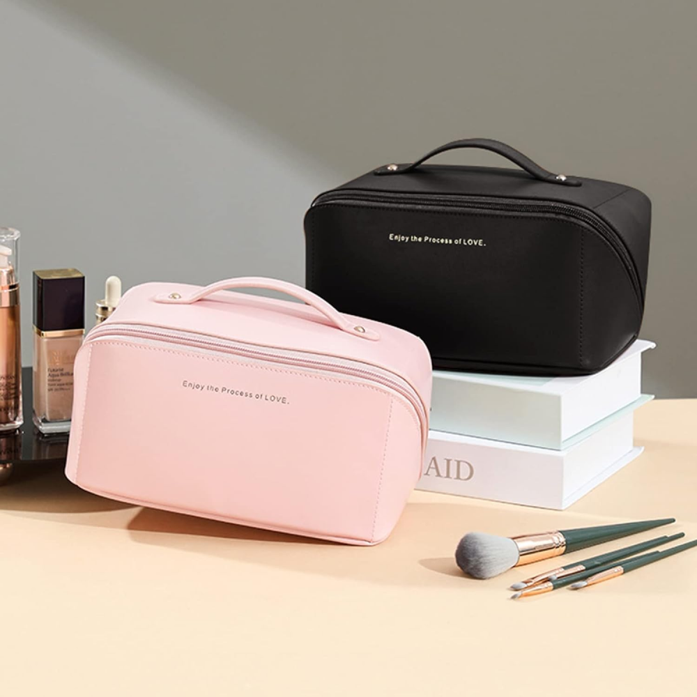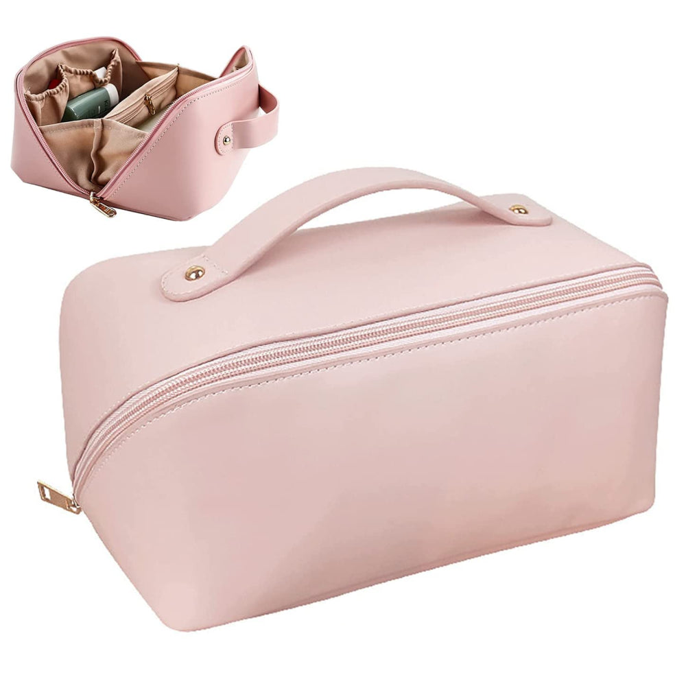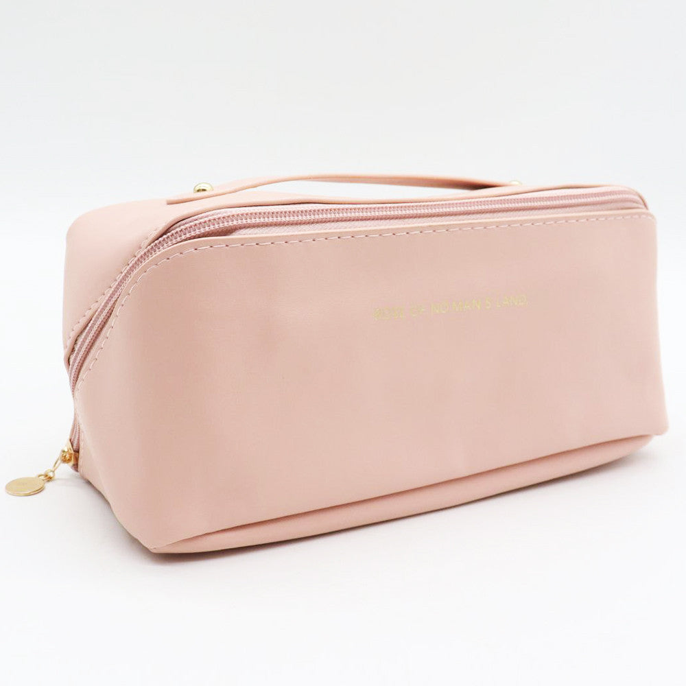 Косметичка з повним доступом з екошкіри (23,5х13х13 см), Рожева / Дорожня жіноча сумка-косметичка