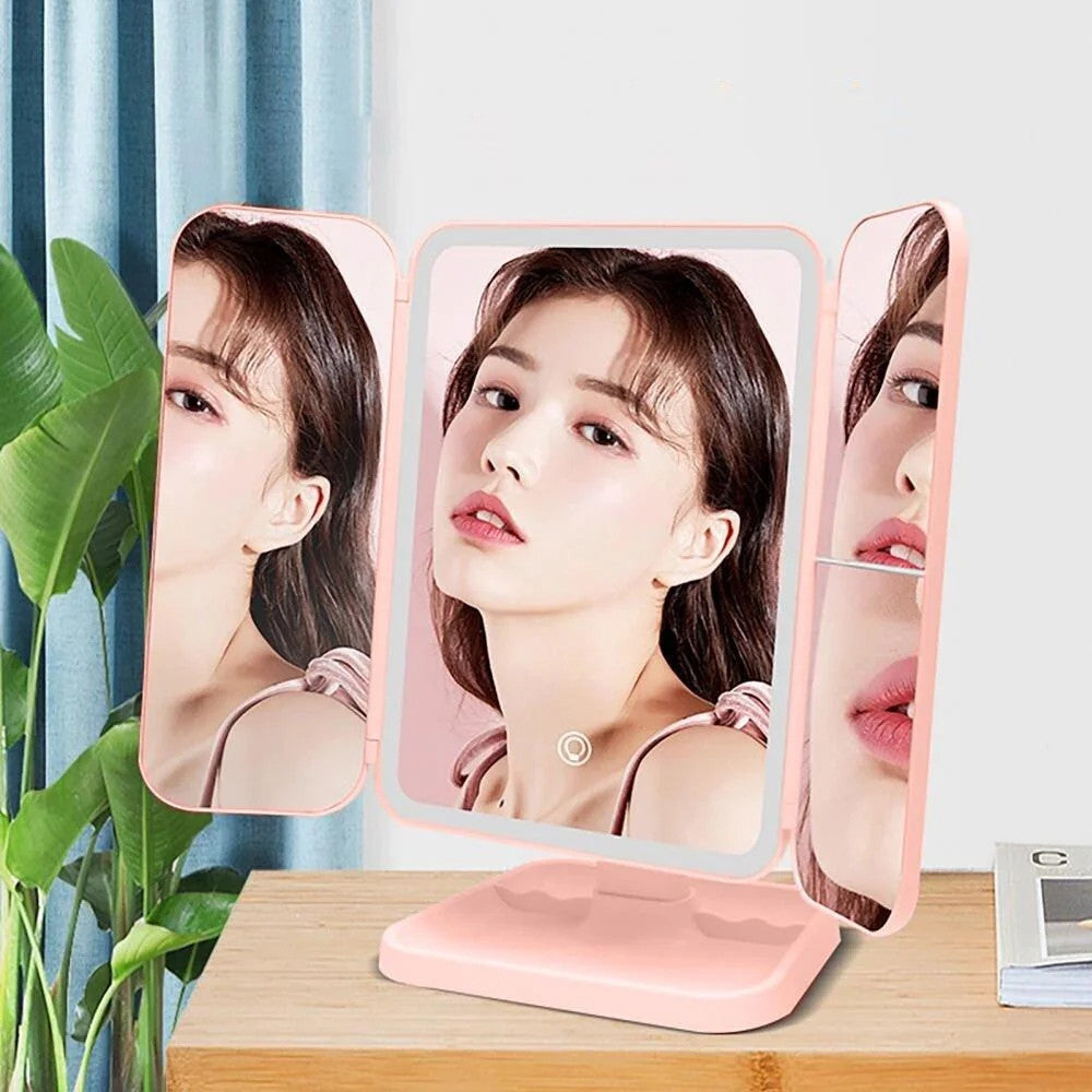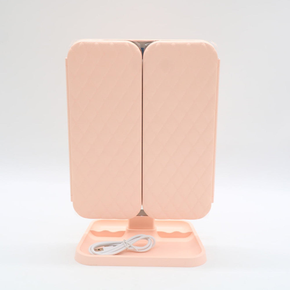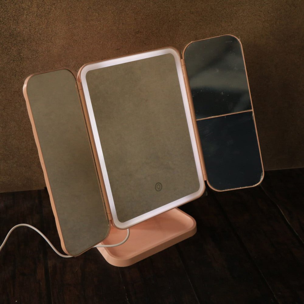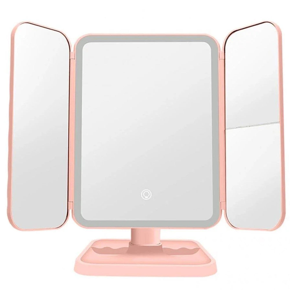 Косметичне дзеркало з LED підсвічуванням XW 810, з USB, Рожевий / Потрійне сенсорне дзеркало для макіяжу