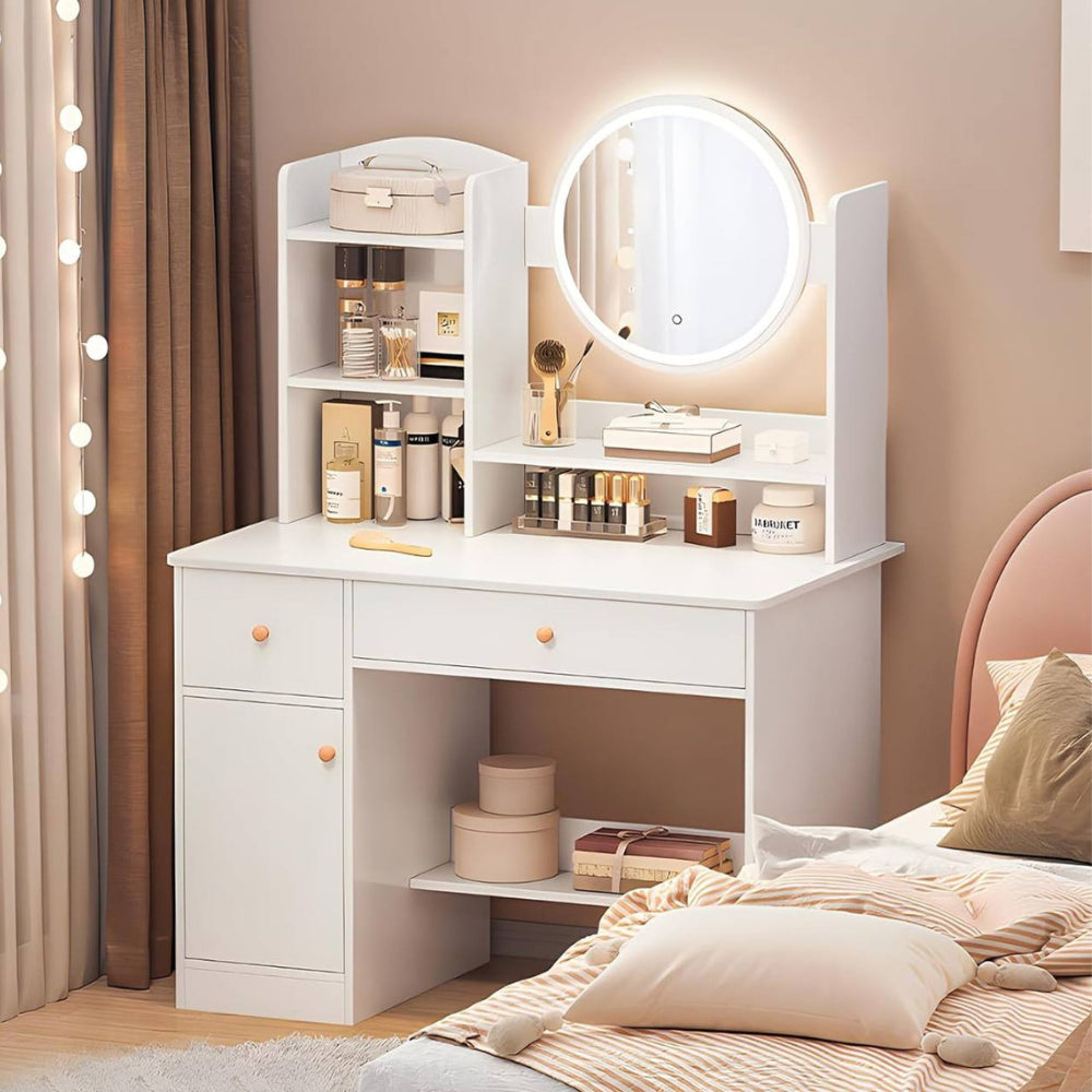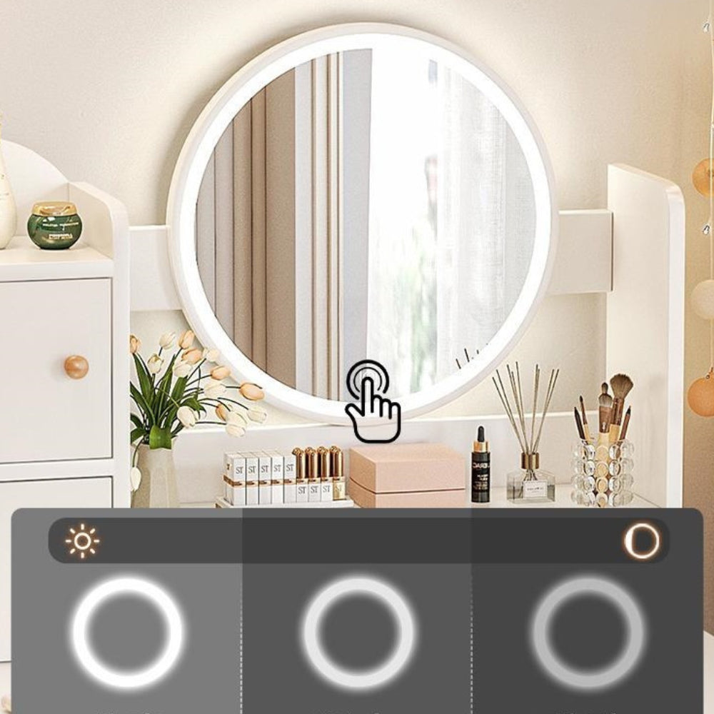 Косметичний столик із дзеркалом та підсвічуванням STL-MD73 стане ідеальним доповненням до вашої особистої зони краси. Завдяки сучасному дизайну та практичним функціям він не лише додасть стилю вашому інтер'єру, але й зробить процес нанесення макіяжу та догляду за собою максимально комфортним. Вбудоване підсвічування забезпечує рівне освітлення, що дозволяє досягти ідеального результату.