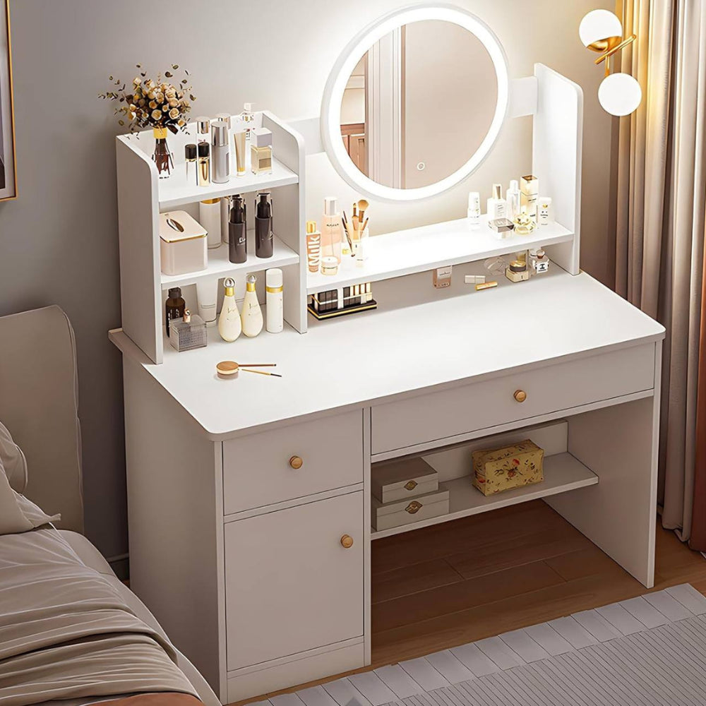 Косметичний столик із дзеркалом та підсвічуванням 130х80х40 см, STL-MD 73, Білий / Косметичний стіл