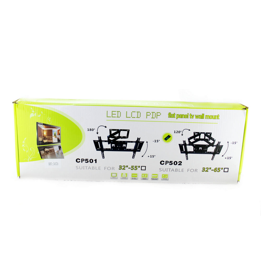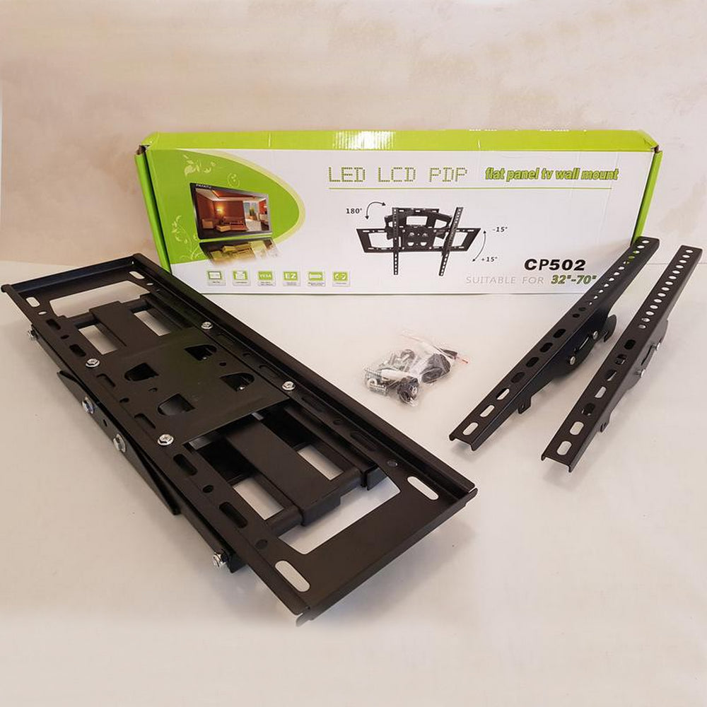 Кронштейн для телевізора CP502 складається з рухомих елементів. Завдяки подібному конструюванню людина може регулювати положення прикріпленої до неї техніки