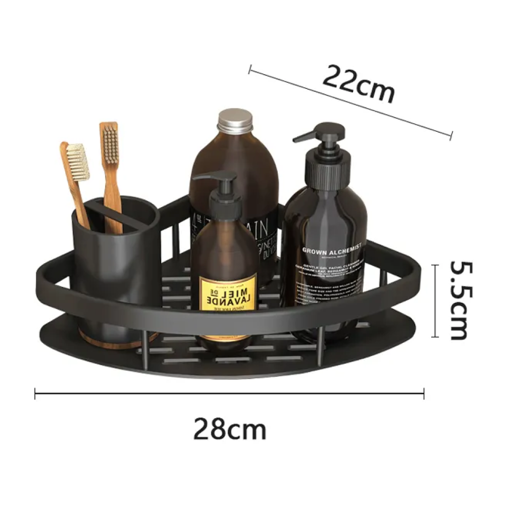 Кутова полиця у ванну 28 х 22 х 5,5см, Чорна / Металева настінна поличка для ванної кімнати