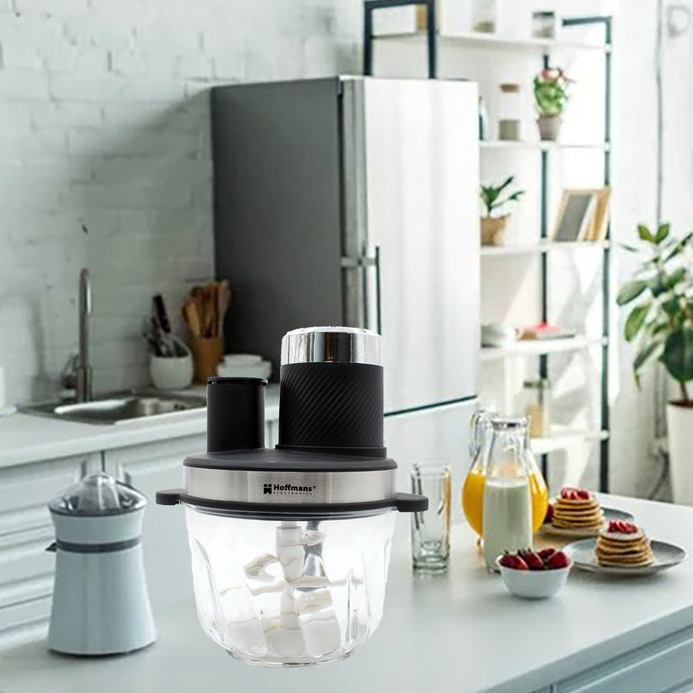 Кухонний подрібнювач-блендер — незамінний помічник на вашій кухні, що ідеально підходить для швидкої та ефективної обробки м'яса, овочів, фруктів та горіхів.