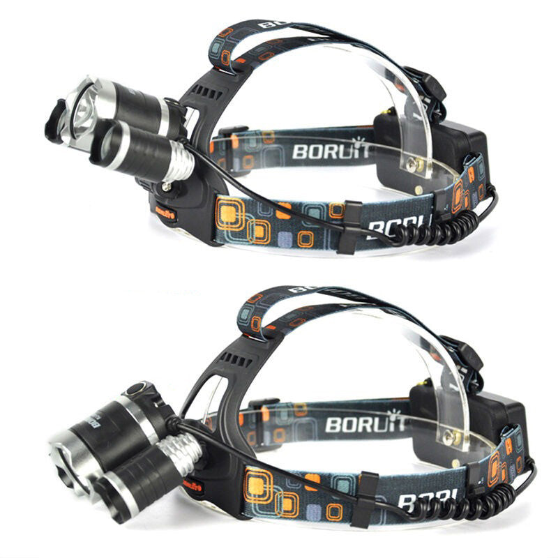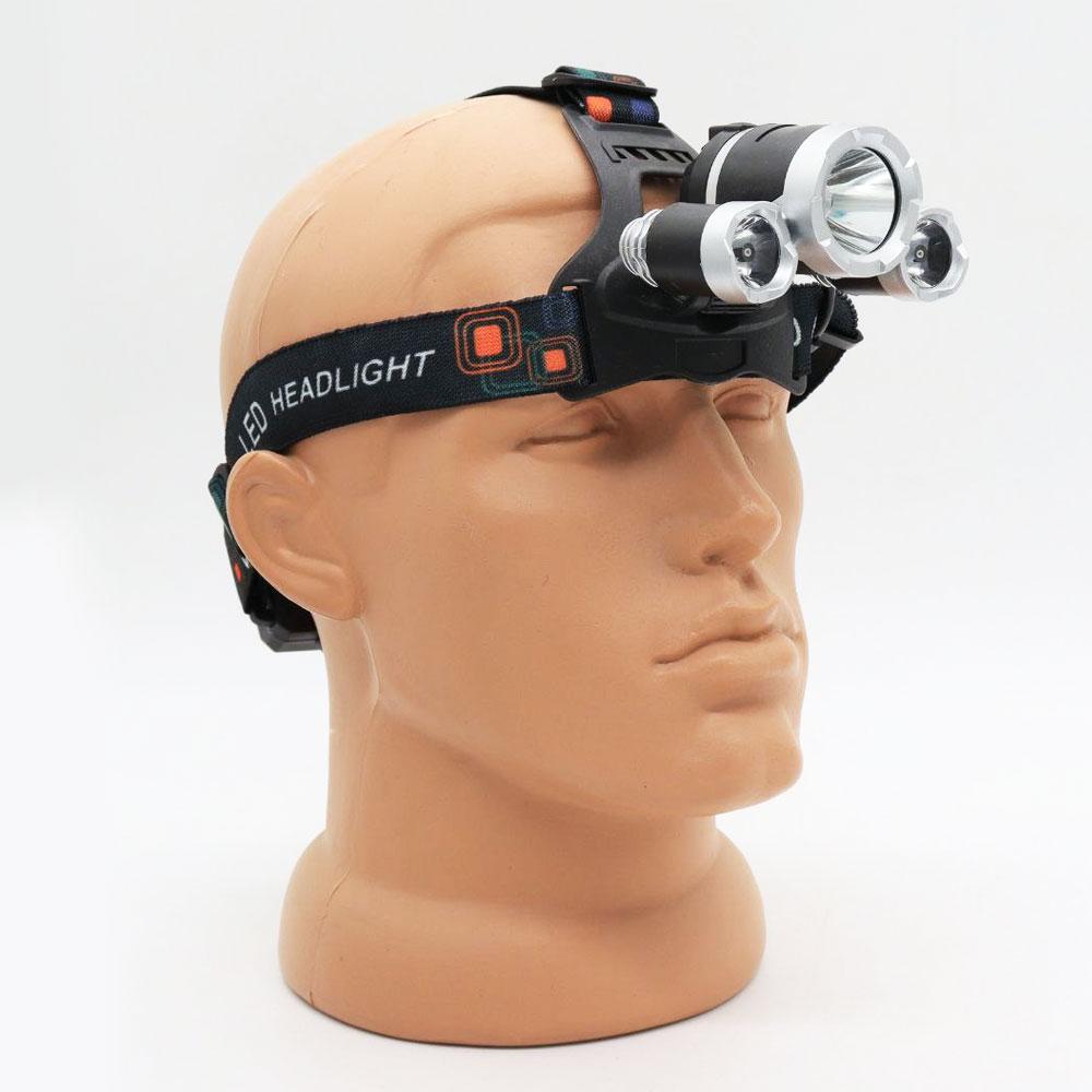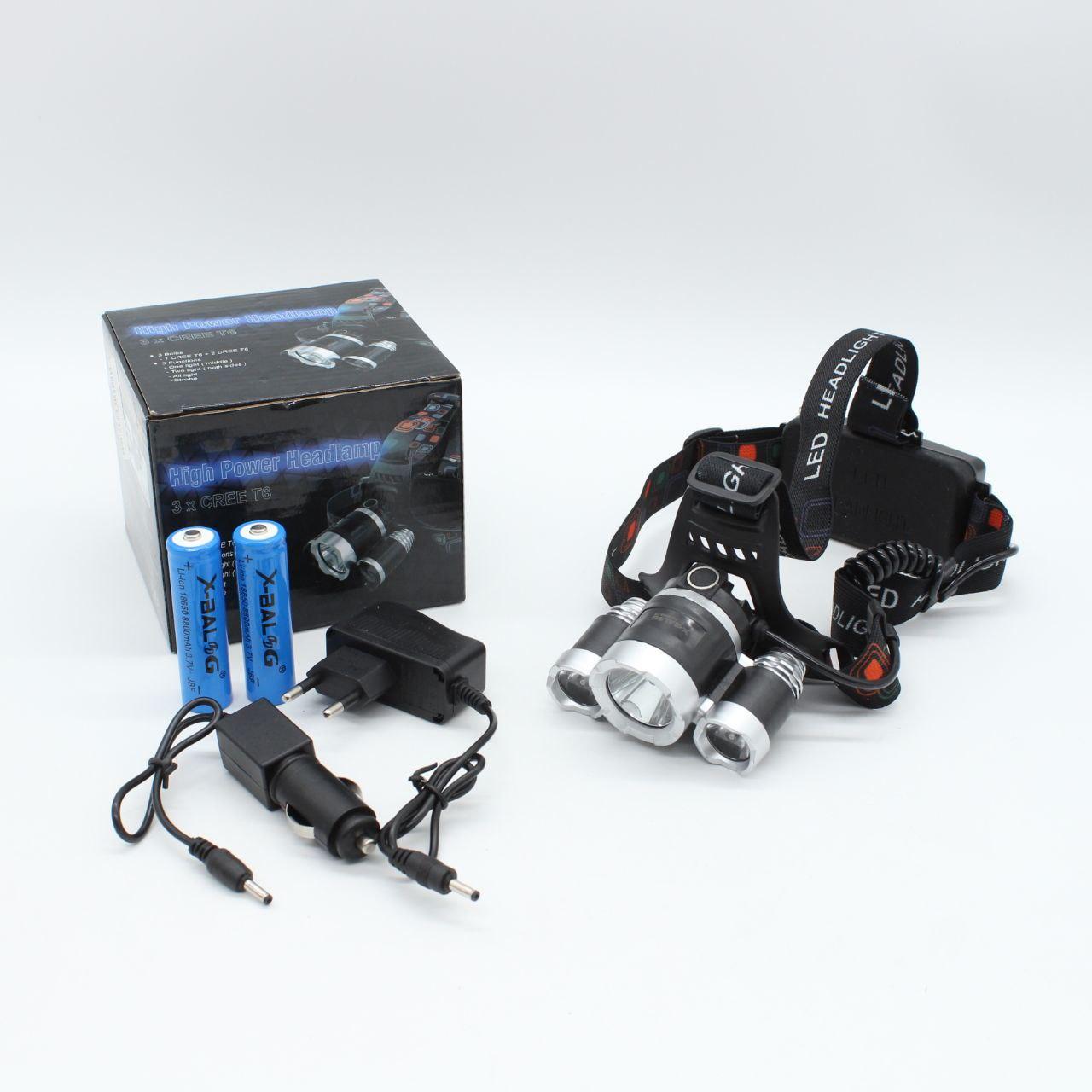 Ліхтарик налобний RJ-3000 Т6+2XPE, 2 акумулятори / Потужний акумуляторний ліхтар на голову з 3 світлодіодами