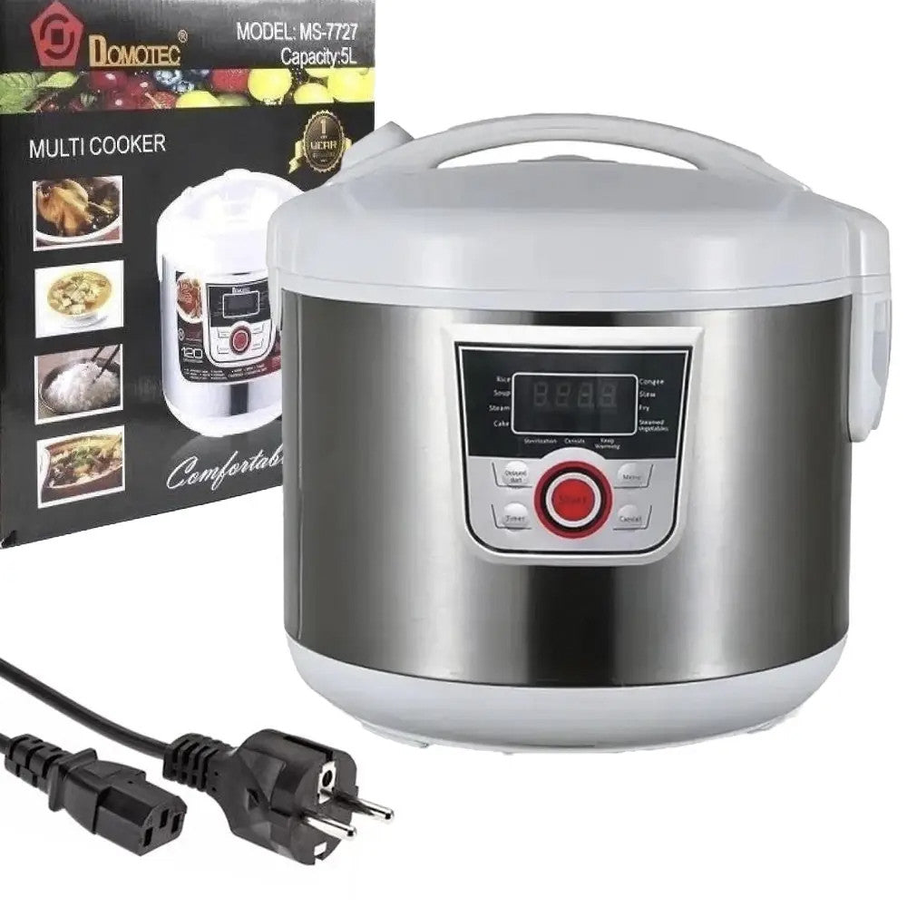 Мультиварка з таймером на 5л, 1500Вт, Domotec MS 7727, Біла / Скороварка / Мультиповар