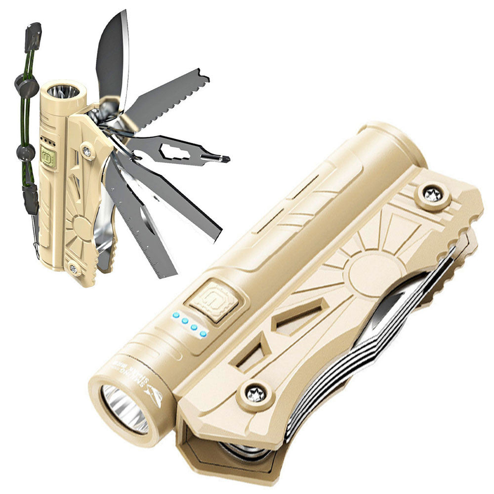 Цей мультитул – ідеальний супутник для туристів, мандрівників та всіх, хто цінує практичність та надійність. Вбудований ліхтарик забезпечить яскраве освітлення в темряві, а набір необхідних інструментів (ніж, викрутки, відкривачка тощо) допоможе впоратися з різними завданнями. Зручне заряджання через USB-порт дозволить завжди підтримувати батарею в робочому стані.