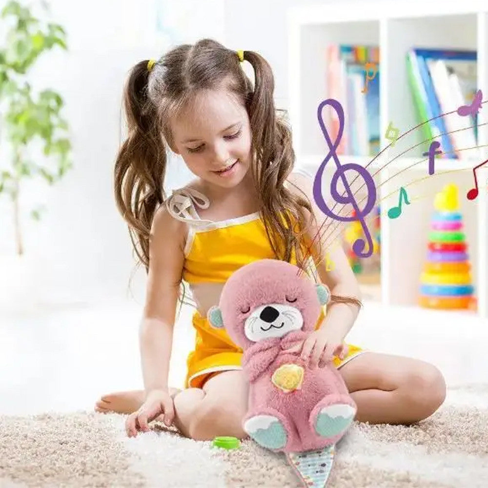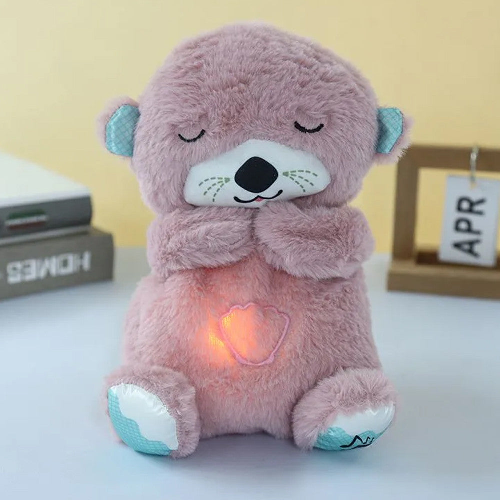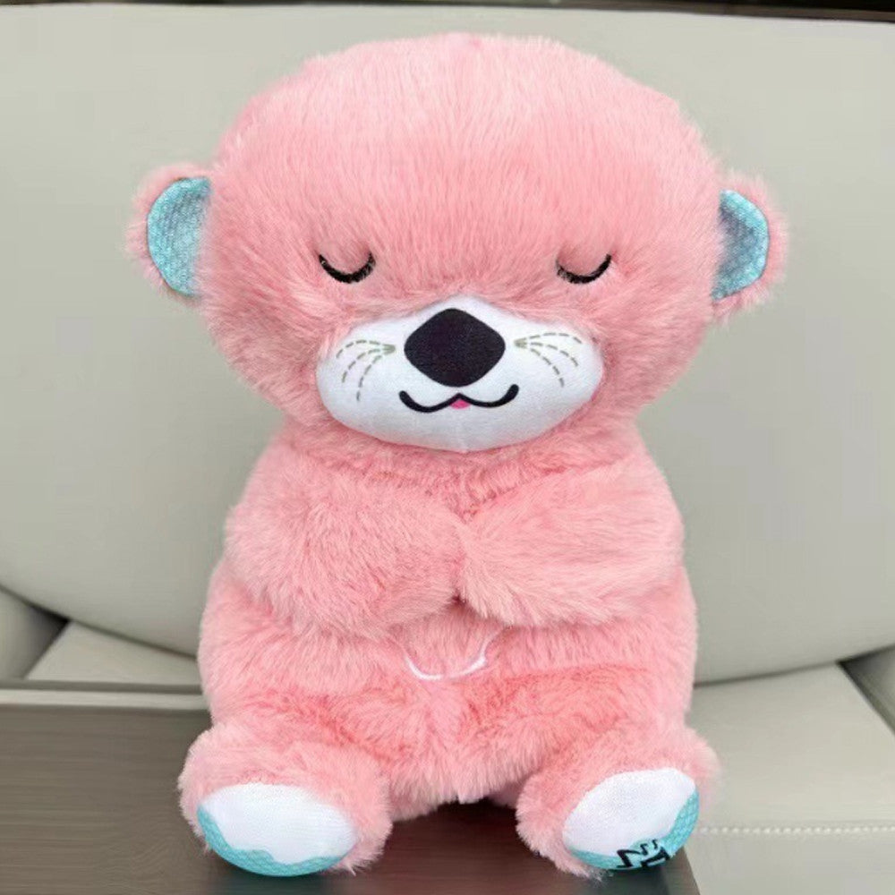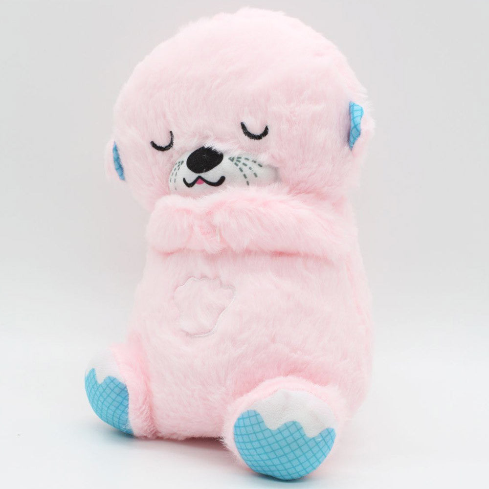 М'яка іграшка нічник з функцією дихання від батарейок, «Видра» 33,5см, Рожевий / Дитячий нічник /Нічник іграшка