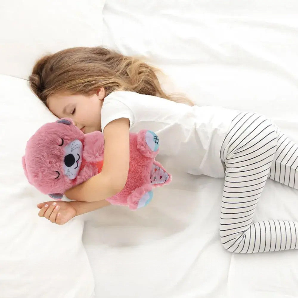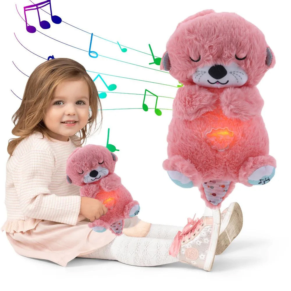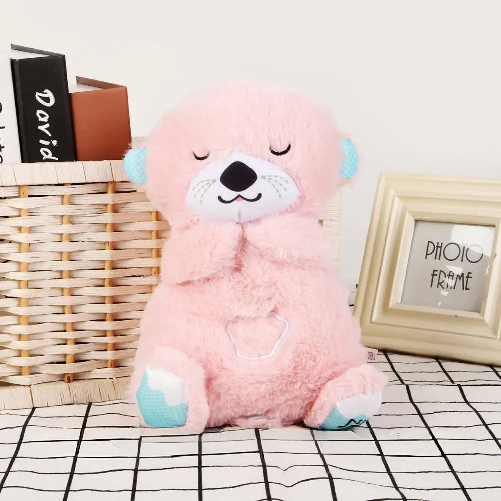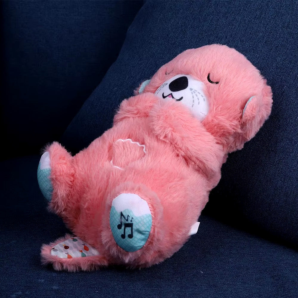 М'яка іграшка нічник з функцією дихання від батарейок, «Видра» 33,5см, Рожевий / Дитячий нічник /Нічник іграшка