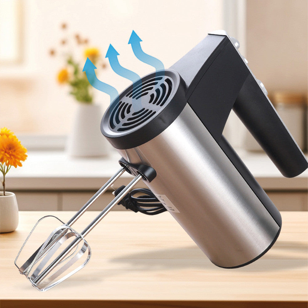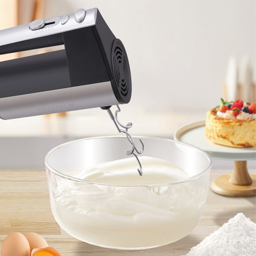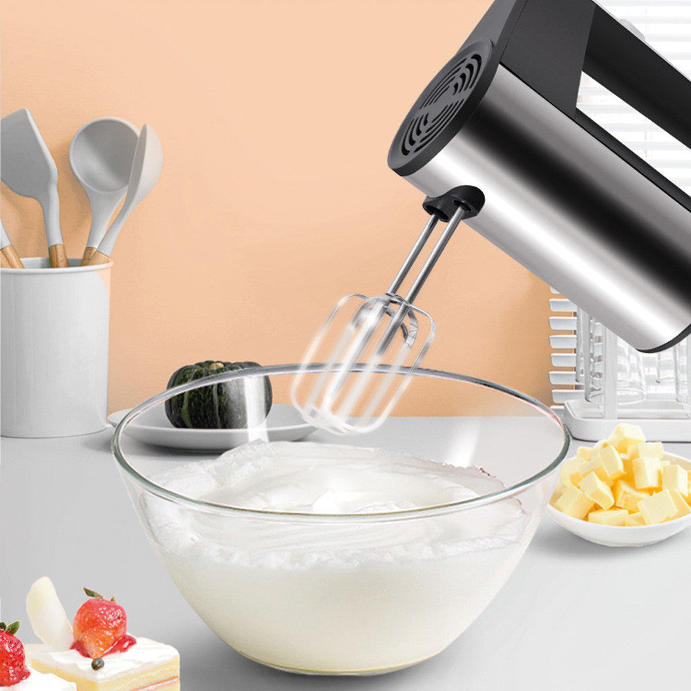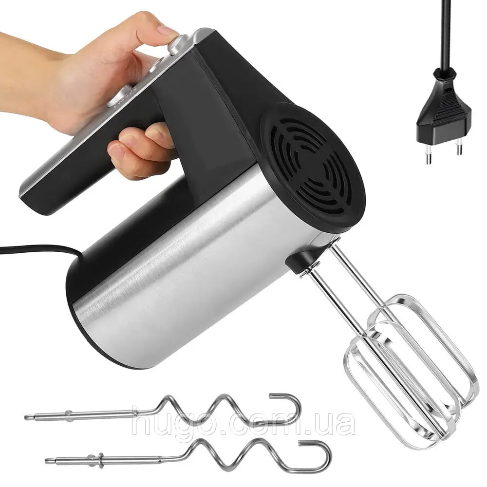 Електроміксер має 5 рівнів швидкості, що дозволяють налаштовувати інтенсивність роботи в залежності від типу інгредієнтів. Низькі швидкості підходять для ніжних сумішей (наприклад, соусів), середні – для кремів, а високі – для густого тіста або збивання білків. Насадки виготовлені з нержавіючої сталі, що забезпечує міцність та довговічність.