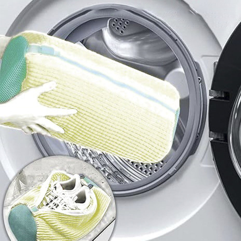 Сітка мішка виготовлена з міцного та зносостійкого матеріалу, який забезпечує вільне проходження води та миючого засобу. Це гарантує якісне прання без залишку бруду та мила. Спеціальні вставки всередині мішка фіксують взуття, не даючи йому вільно переміщатися у барабані. Використання такого мішка – це простий спосіб продовжити термін служби вашого взуття та пральної машини.
