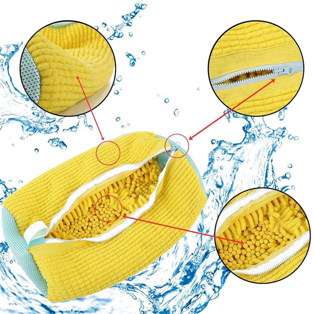 Сітка мішка виготовлена з міцного та зносостійкого матеріалу, який забезпечує вільне проходження води та миючого засобу. Це гарантує якісне прання без залишку бруду та мила. Спеціальні вставки всередині мішка фіксують взуття, не даючи йому вільно переміщатися у барабані. Використання такого мішка – це простий спосіб продовжити термін служби вашого взуття та пральної машини.