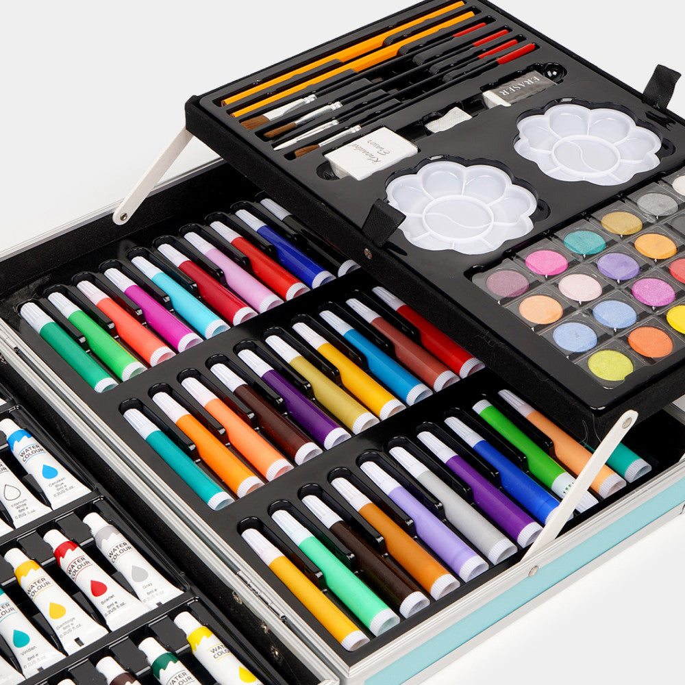 Розвивайте творчий потенціал вашої дитини з нашим набором для малювання у зручній валізі. Цей комплект складається з 145 якісних інструментів, включаючи фарби, олівці, фломастери, пензлі та багато інших матеріалів, що дозволяє малюкам створювати яскраві та оригінальні роботи. Завдяки компактній валізі, набір легко зберігати і переносити, що робить його ідеальним для дому, поїздок або занять у творчих гуртках.
