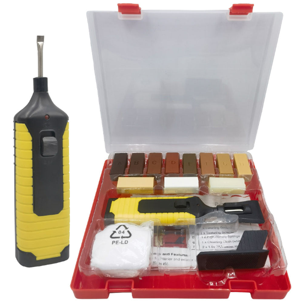 Цей набір для ремонту підлог відмінно підходить для швидкого і якісного відновлення вашої підлоги. Виготовлений з міцного АБС-пластику і смоли, цей набір містить все необхідне для ремонту відколів фарби і подряпин на підлогових покриттях.