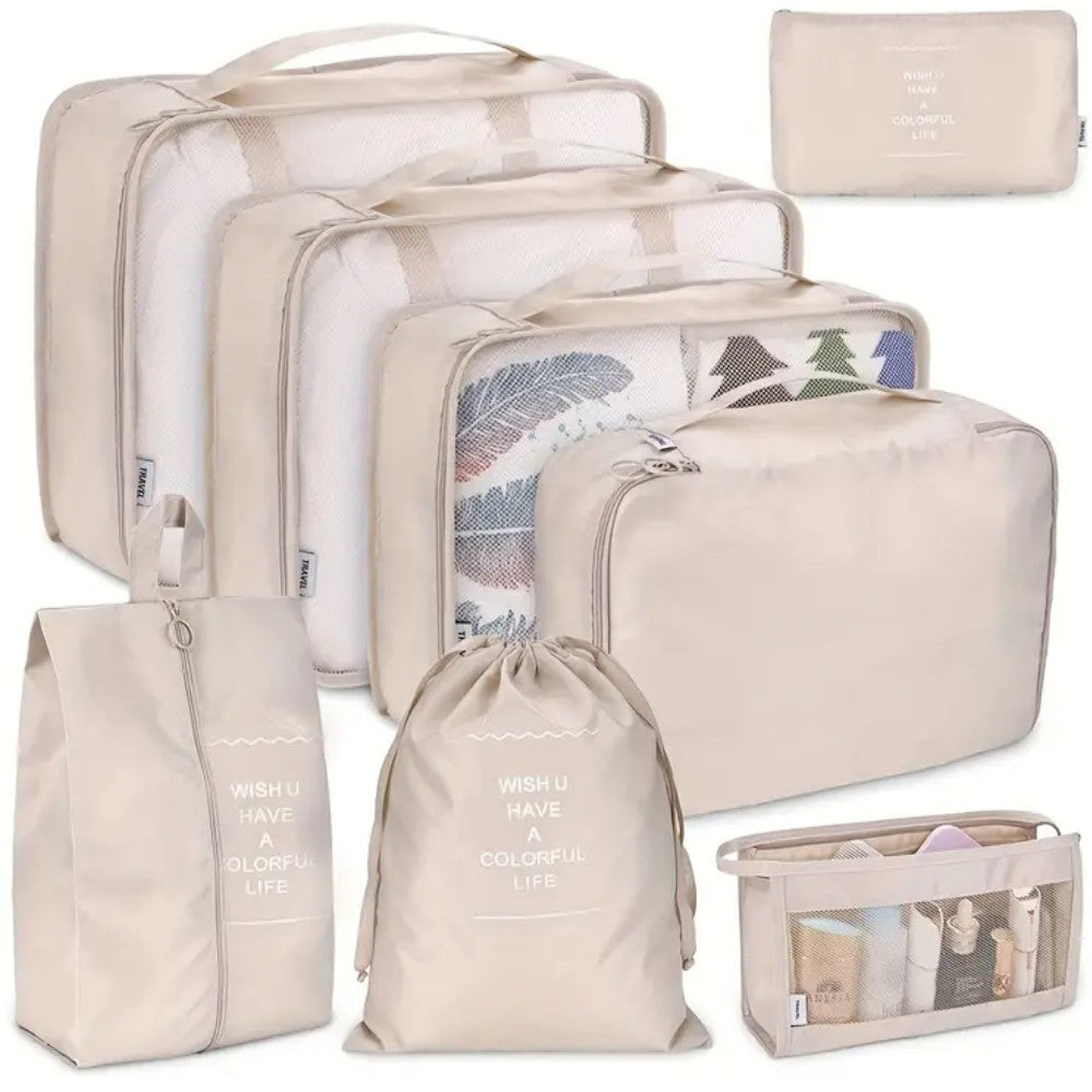 Набір дорожніх органайзерів 8 шт, Біжовий / Дорожній набір органайзерів / Органайзери для подорожей