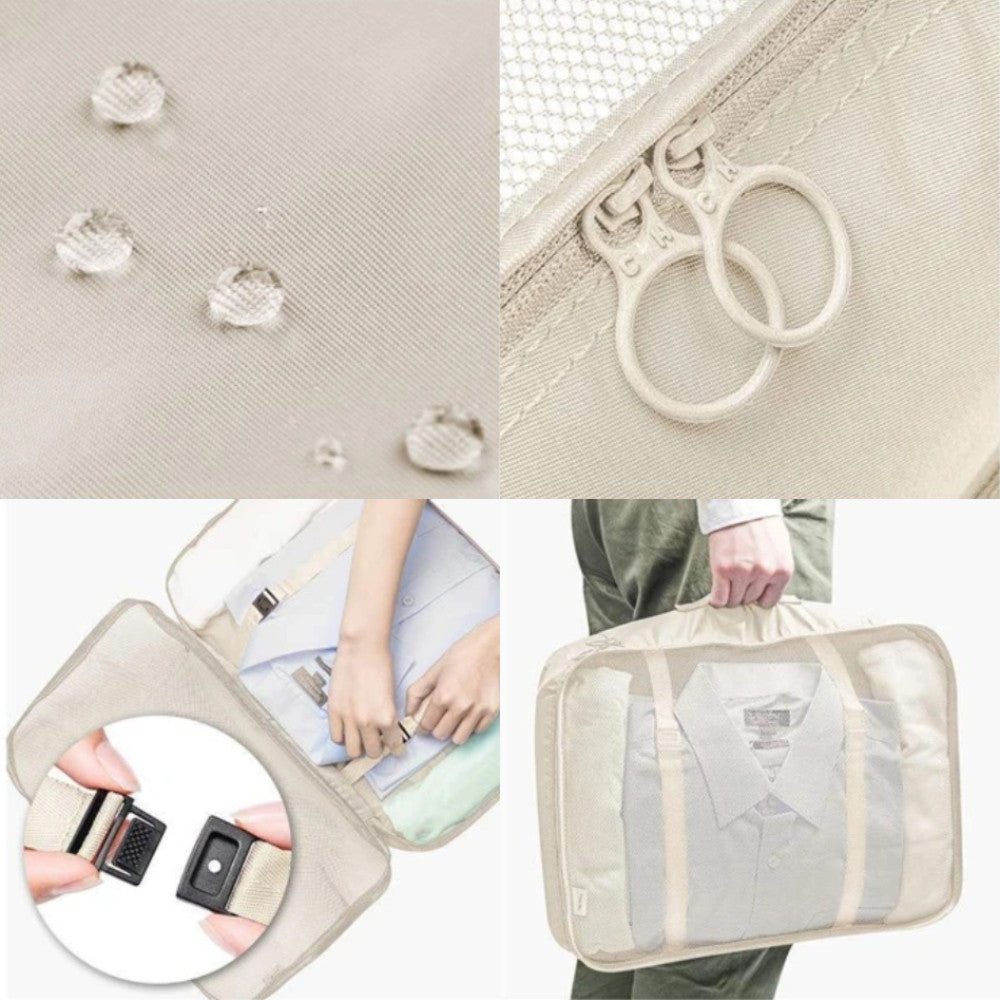 Виготовлений з легкого, але дуже міцного матеріалу, набір легко чиститься та служить довго. Органайзери компактно складаються, економлячи місце у валізі. Вони ідеально підійдуть для поїздок будь-якої тривалості та складності. Універсальний бежевий колір та стильний дизайн гармонійно доповнять ваш багаж.