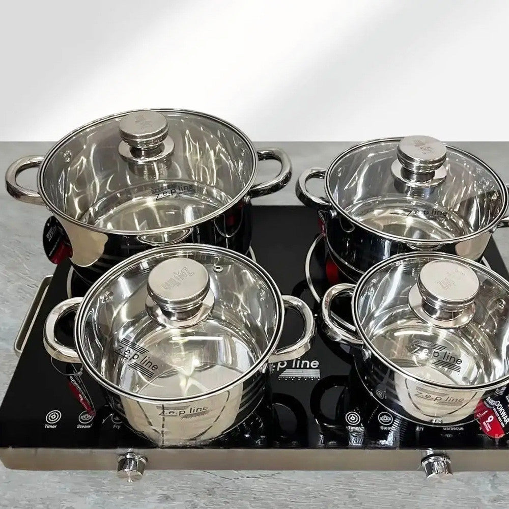 Облаштуйте свою кухню з набором посуду з нержавіючої сталі Zepline ZP-075 для зручності у приготуванні страв!