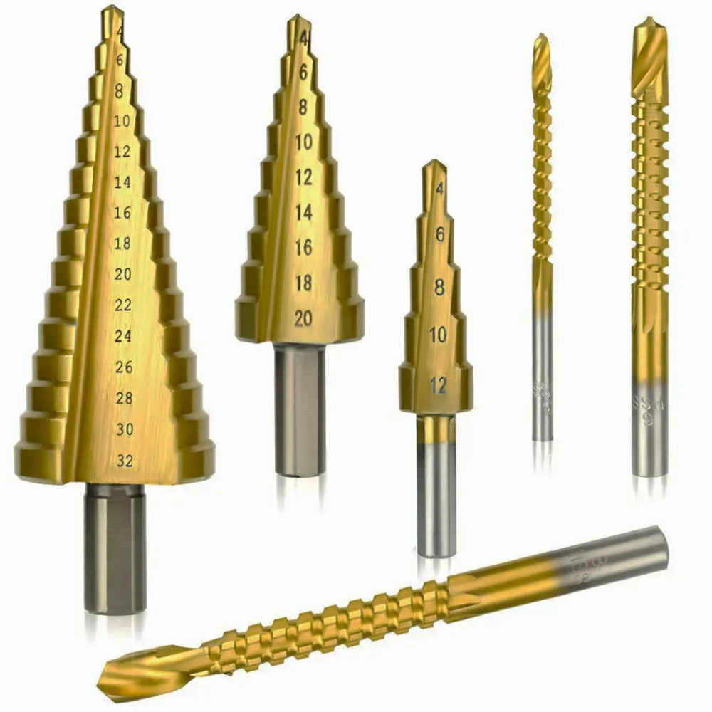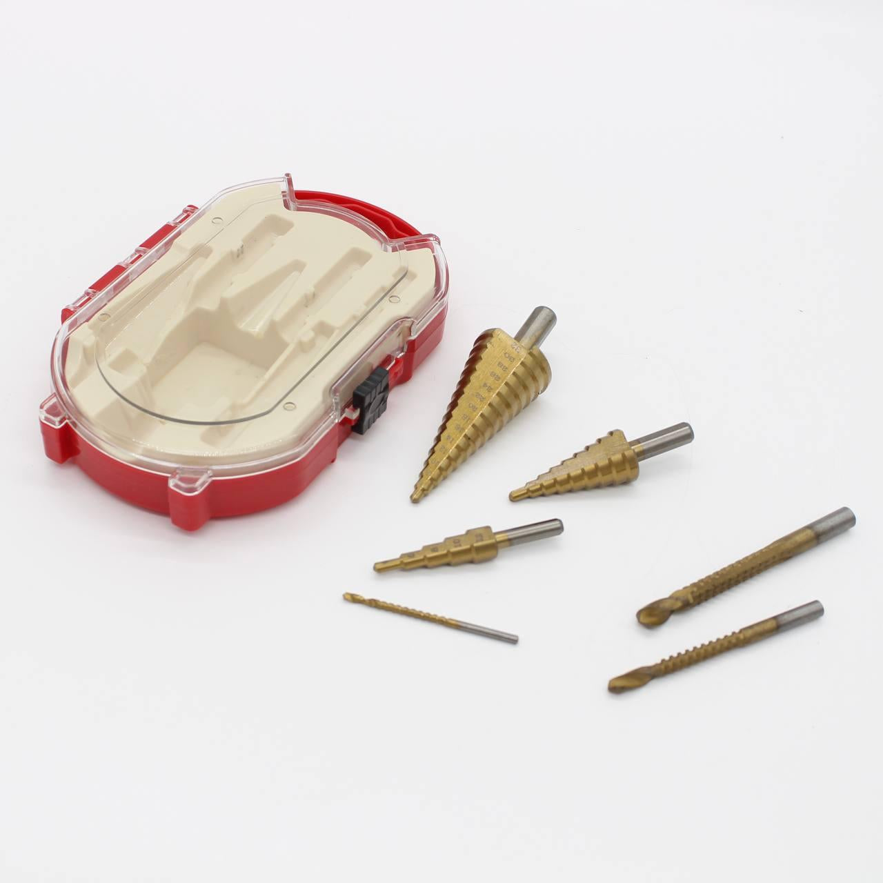Набір фрезерних та ступінчастих свердлів 6 шт / Свердла по металу з титановим покриттям / Набір ступінчастих свердл