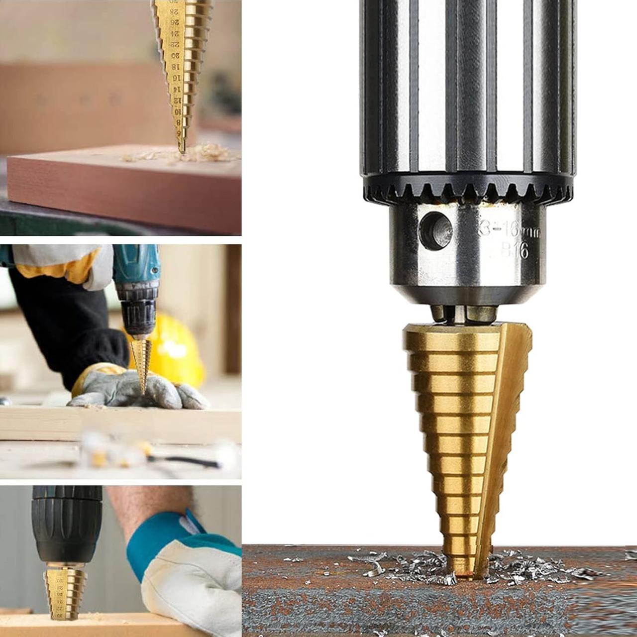 - Ступінчасте конусне свердло діаметром від 4 до 20 мм з кроком 2 мм