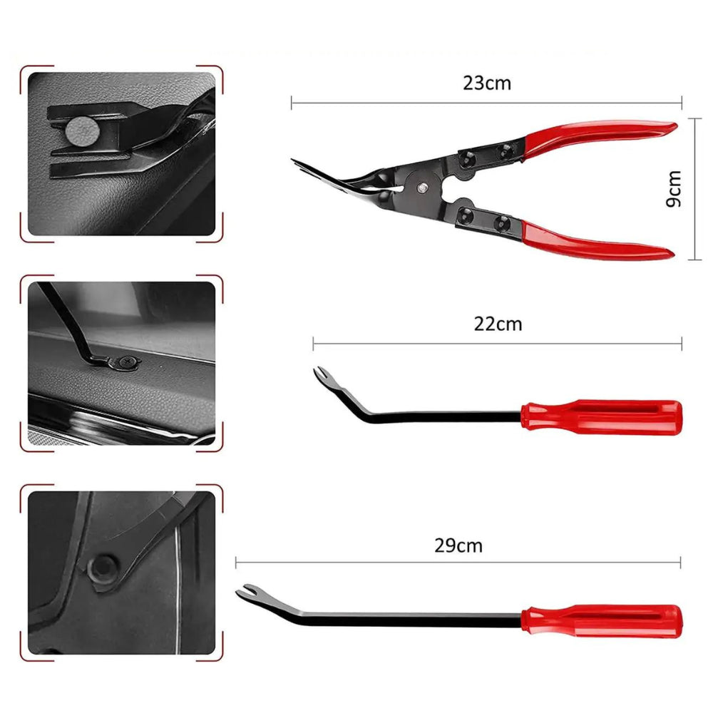 Зручний кейс забезпечує організоване зберігання та легке транспортування набору, що дозволяє швидко знаходити потрібний інструмент. Цей компактний та ергономічний набір ідеально підходить як для професійного використання в автосервісах, так і для самостійного обслуговування автомобіля. З цим набором ви зможете легко та безпечно оновити або відремонтувати салон вашого автомобіля, заощаджуючи час та гроші.