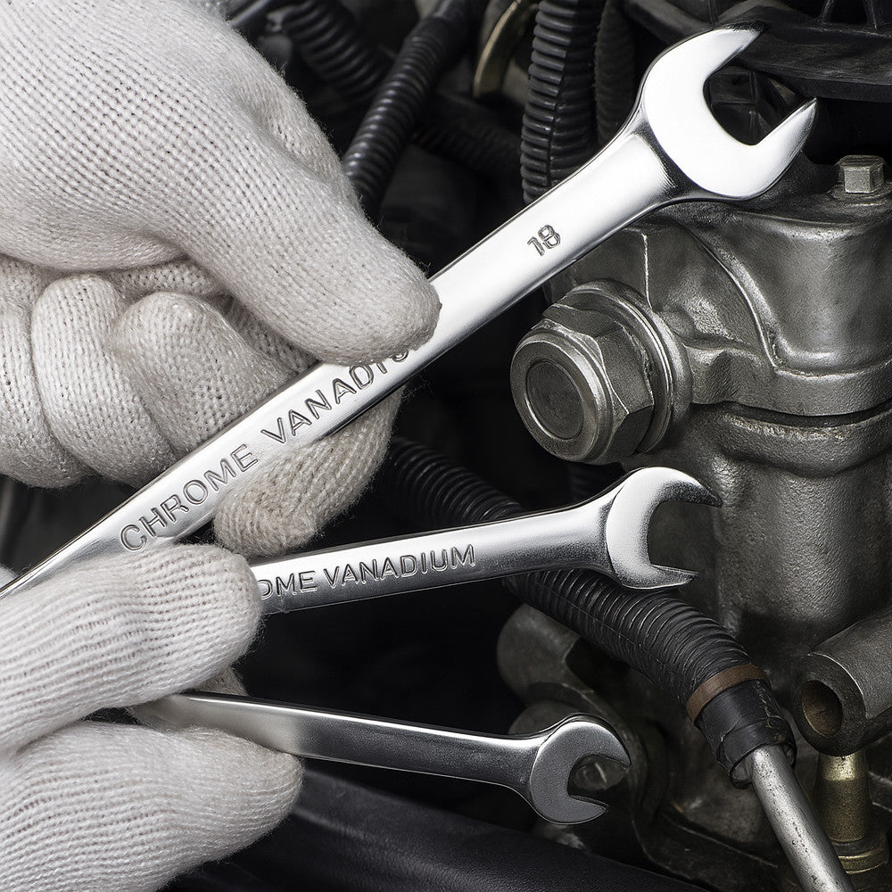 - Ключі комбіновані 10 ШТ.: 8, 10Х2, 12Х2, 14Х2, 17Х2, 19Х2.