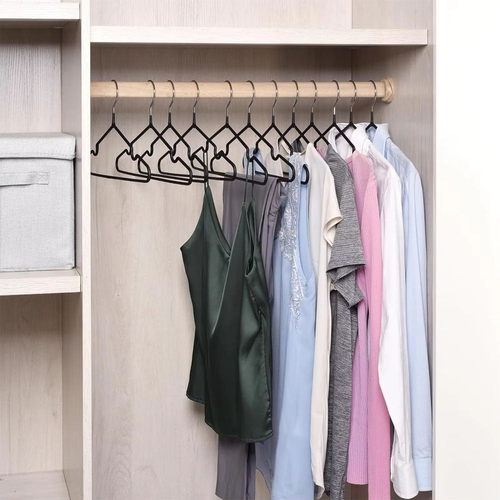 Вішалки – це набір, який стане ідеальним рішенням для зберігання різноманітного одягу. Завдяки спеціальному силіконовому покриттю вони ефективно запобігають ковзанню речей, забезпечуючи їхнє стабільне положення та збереження форми. Такі тремпелі для одягу підходять не тільки для домашнього використання, але й для готелів чи магазинів одягу.