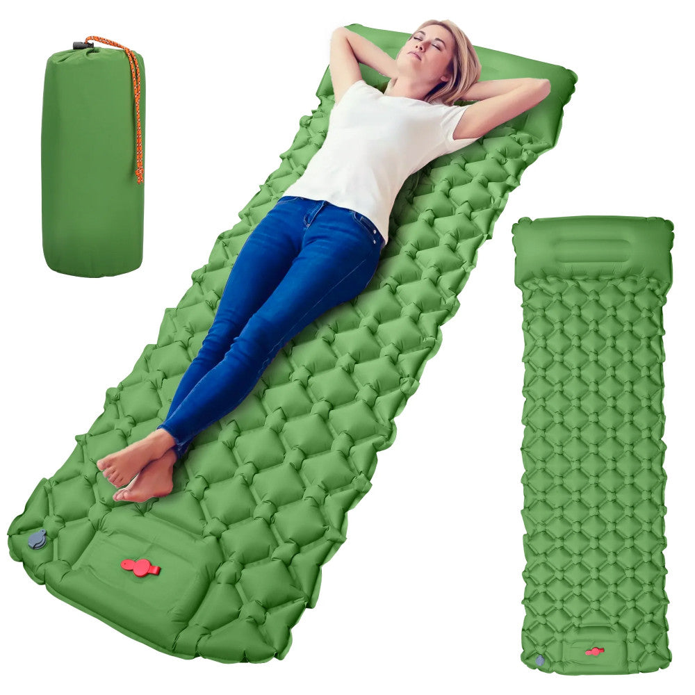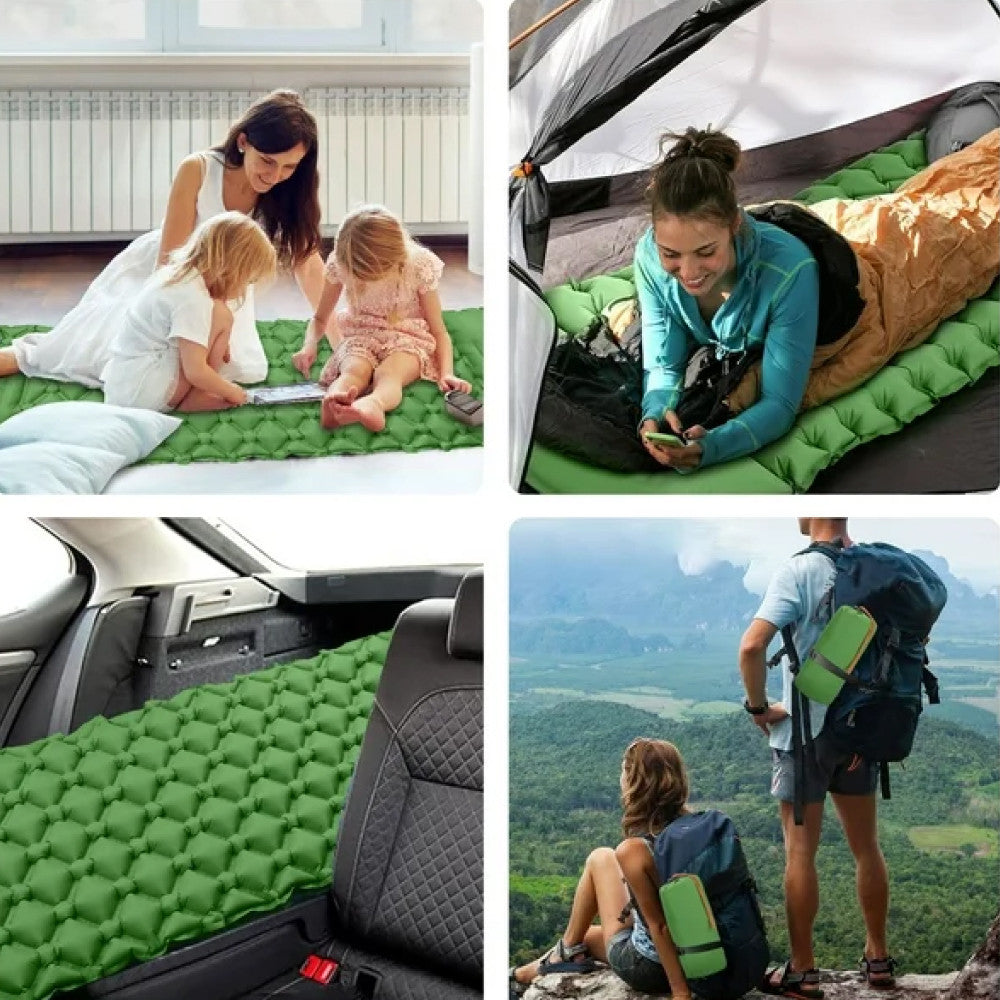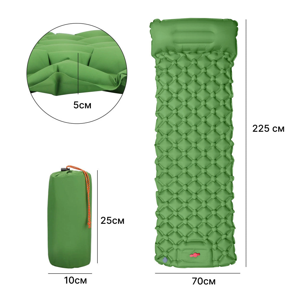 Надувний каремат з подушкою та вбудованим насосом, 225х70см, Зелений / Туристичний каремат / Надувний килимок