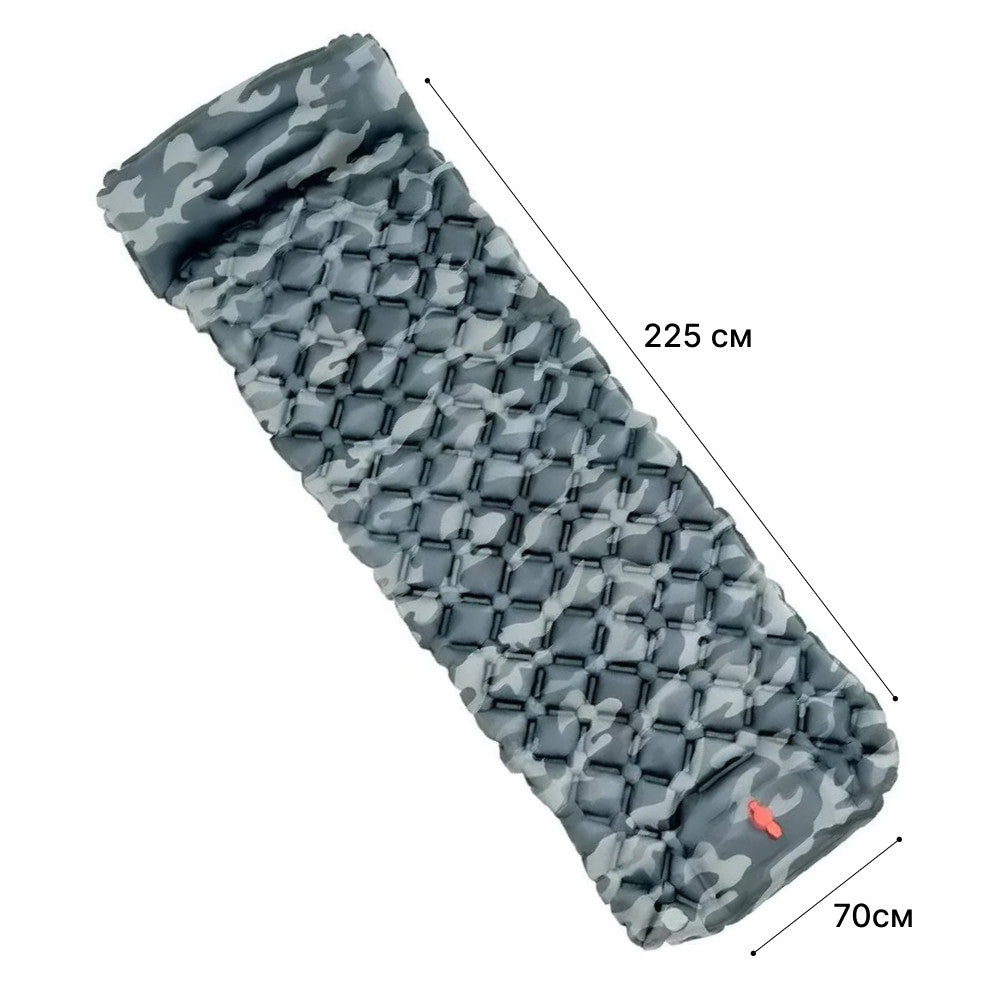 Надувний каремат з подушкою та вбудованим насосом, 225х70см, Камуфляж / Туристичний каремат / Надувний килимок
