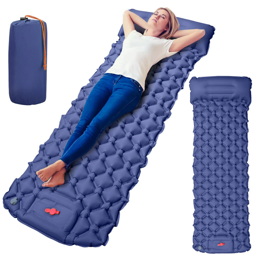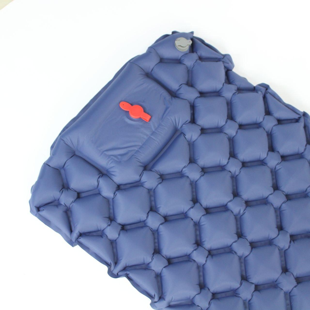 Надувний каремат з подушкою та вбудованим насосом, 225х70см, Синій / Туристичний каремат / Надувний килимок