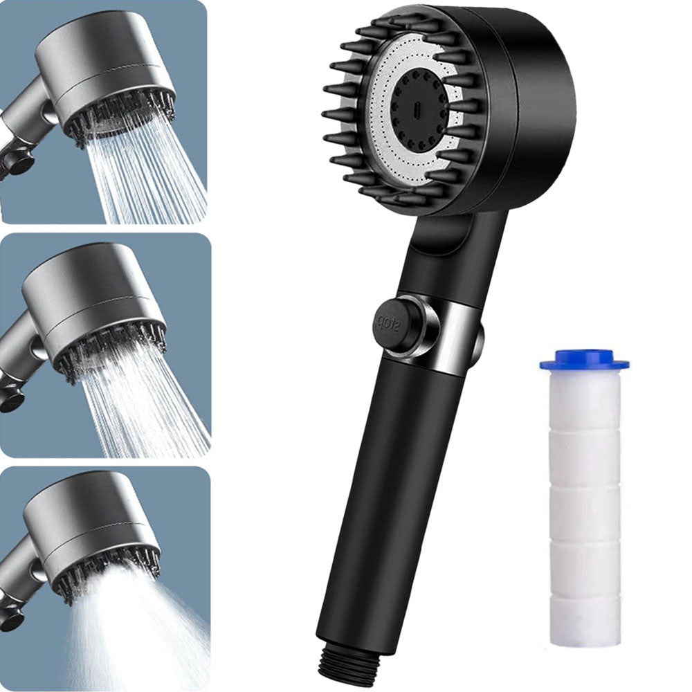 Насадка лійка для душу 3 режими + 1 фільтр, Чорний / Масажна лійка душова / Водозберігаюча душова лійка