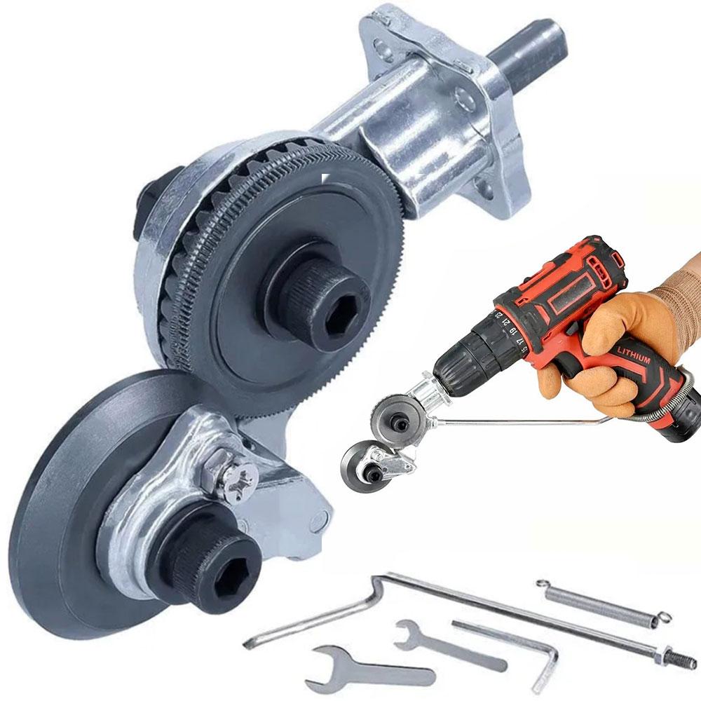 Насадка на дриль для різання металу - це переважно виготовлена з високовуглецевої сталі або титанової сталі насадка, яка замінює звичайні ножиці по металу, електричні вирубні та висічні ножиці. Насадка дозволяє без задирок різати листовий метал і навіть лінолеум.