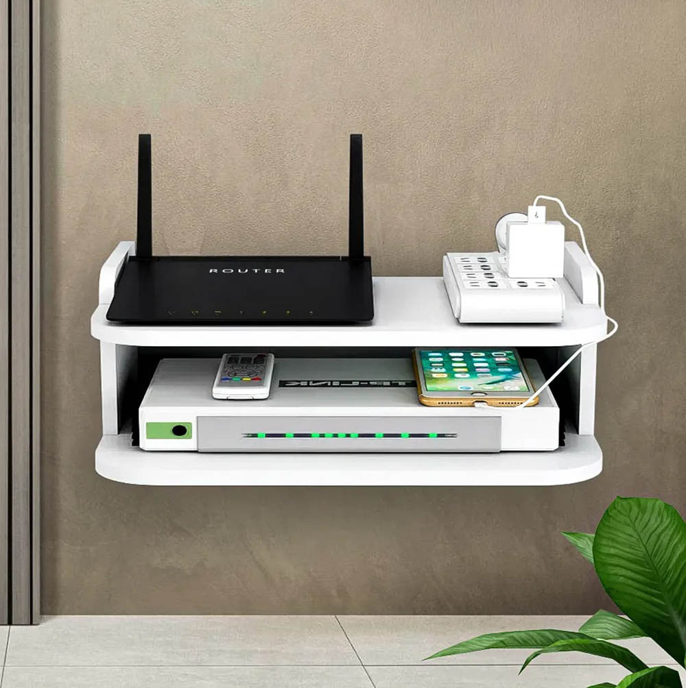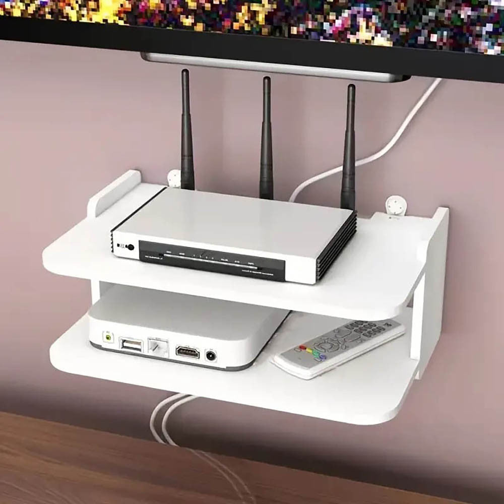 Настінна полиця для роутера 2-х рівнева / Пряма полиця для маршрутизатора / Коробка для роутера