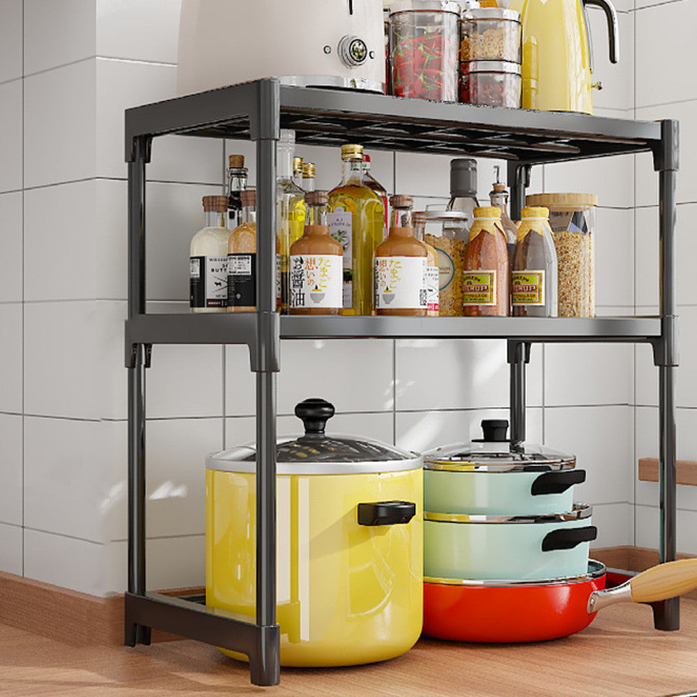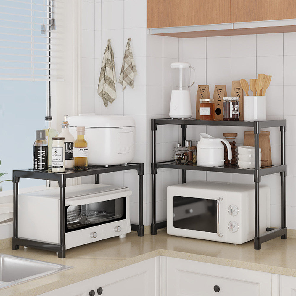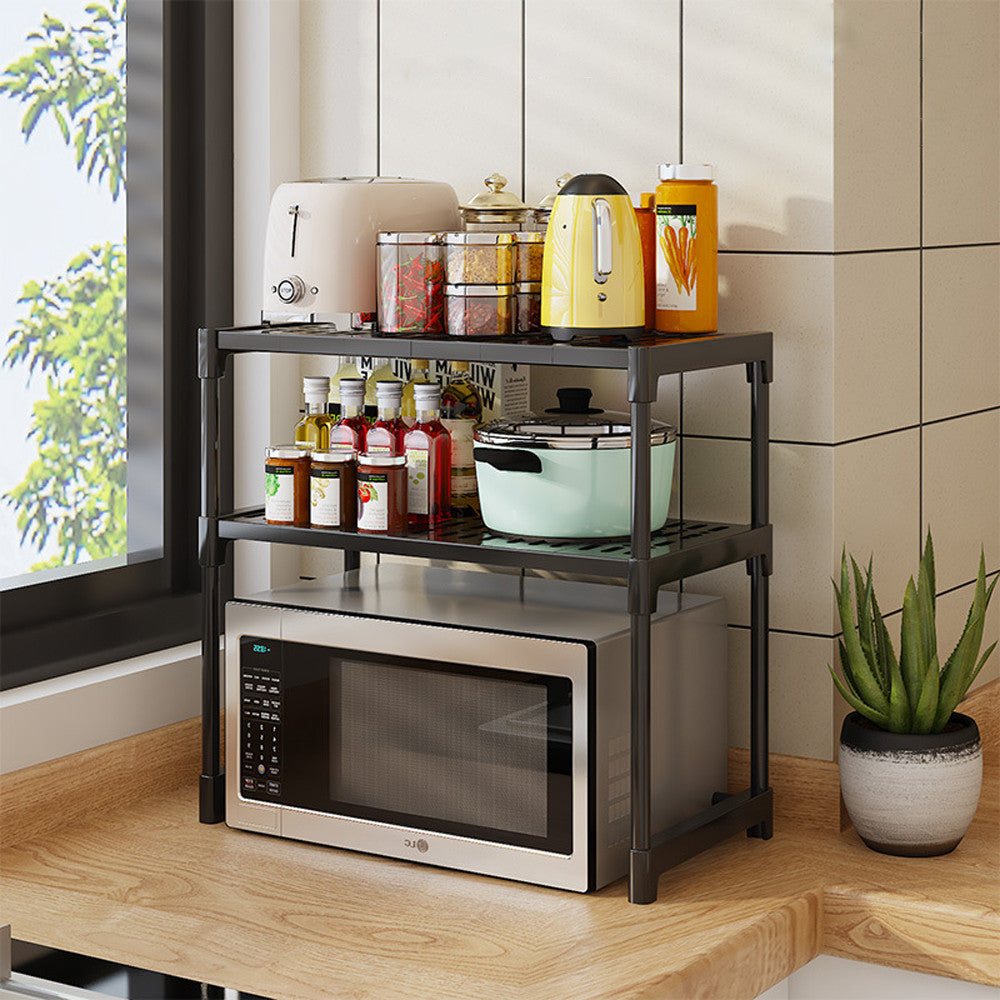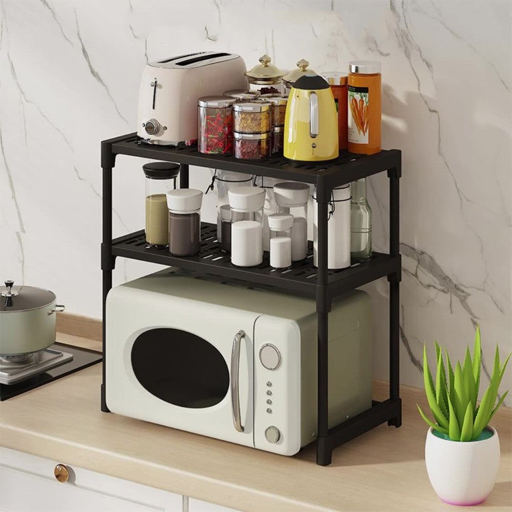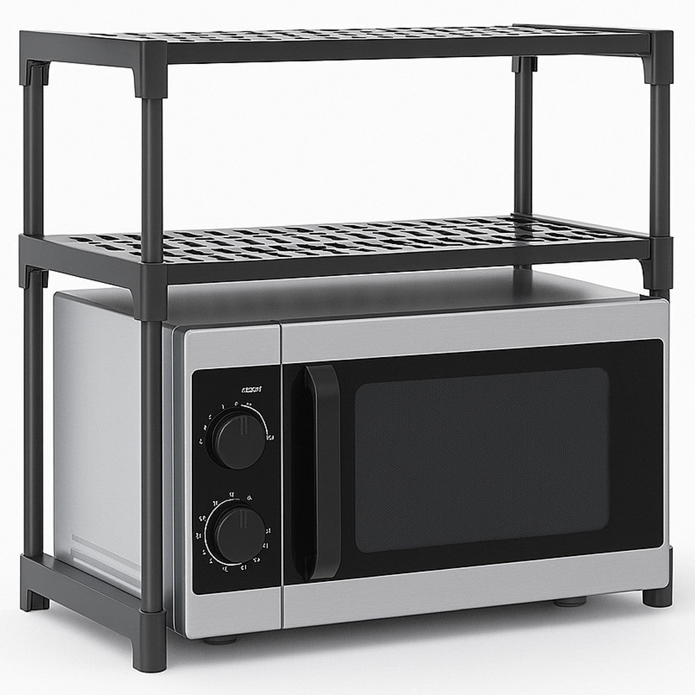 Органайзер для мікрохвильової печі з 2 полицями, 57х30х48см, Чорний / Органайзер для кухні / Настільна етажерка