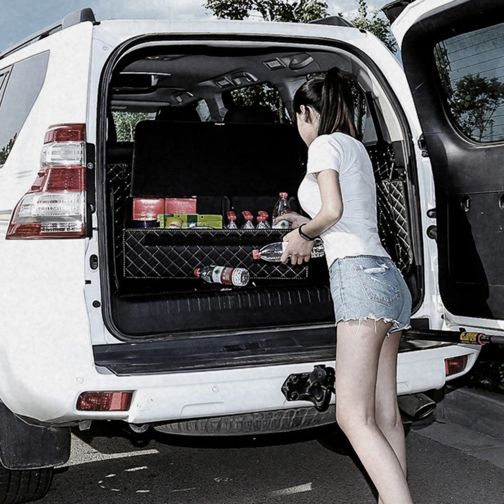 Органайзер для багажника автомобіля – це практичний аксесуар, що допомагає підтримувати порядок у багажному відділенні, запобігаючи хаотичному переміщенню речей під час руху. Виготовлений із міцних матеріалів, таких як екошкіра, органайзер оснащений численними відділеннями та кишенями, що дозволяє зручно розміщувати інструменти, автохімію, продукти чи особисті речі.