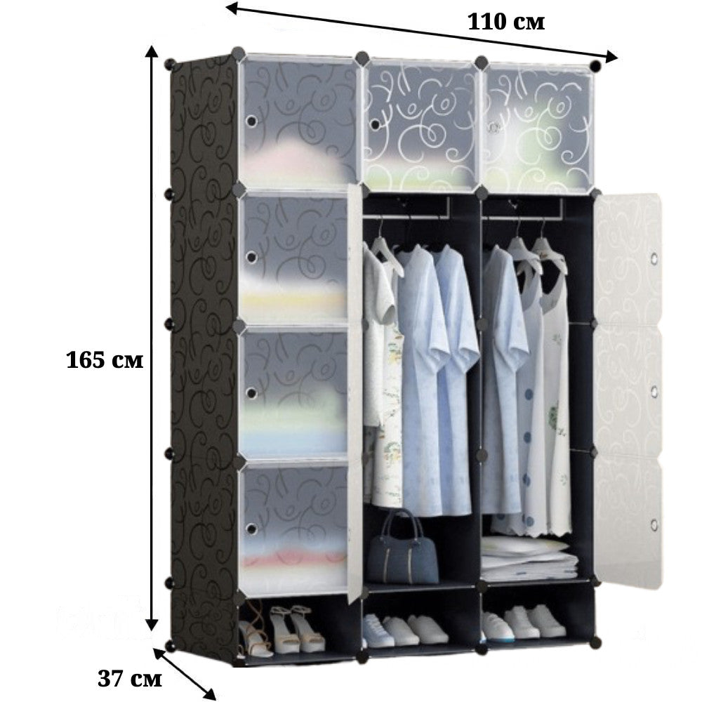 Платтяна шафа з пластику на 15 секцій, 165х110х37 см / Багатофункціональна шафа для одягу та взуття