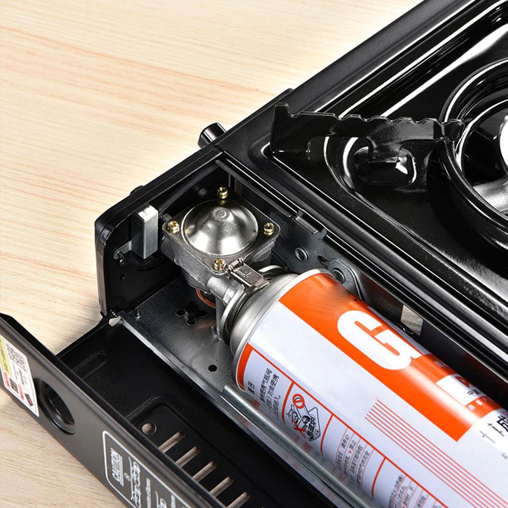 Газова настільна плита підійде для побутового використання на дачі. Плита оснащена системою запобігання витоку газу та п'єзопідпалом. Пальник з алюмінію має вітрозахист. На панелі розташований важіль кріплення картриджа та регулятор подачі газу, витрата якого 155 г/год.