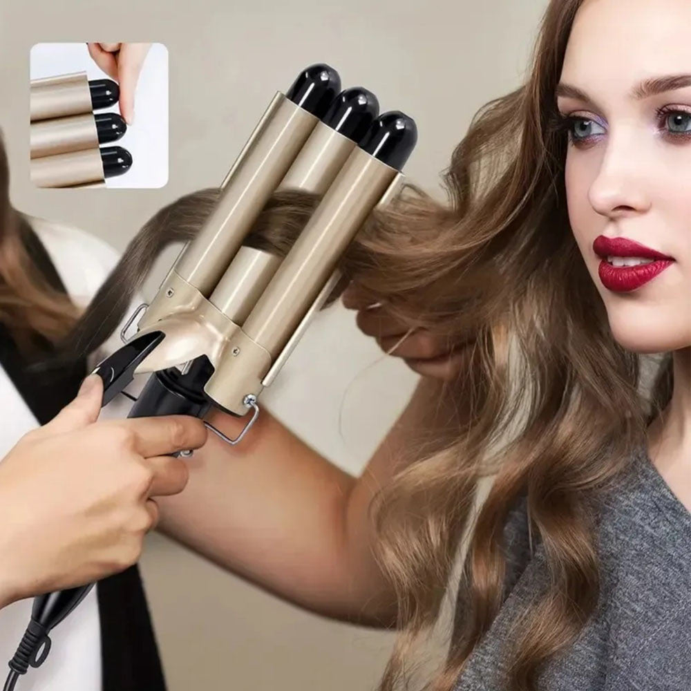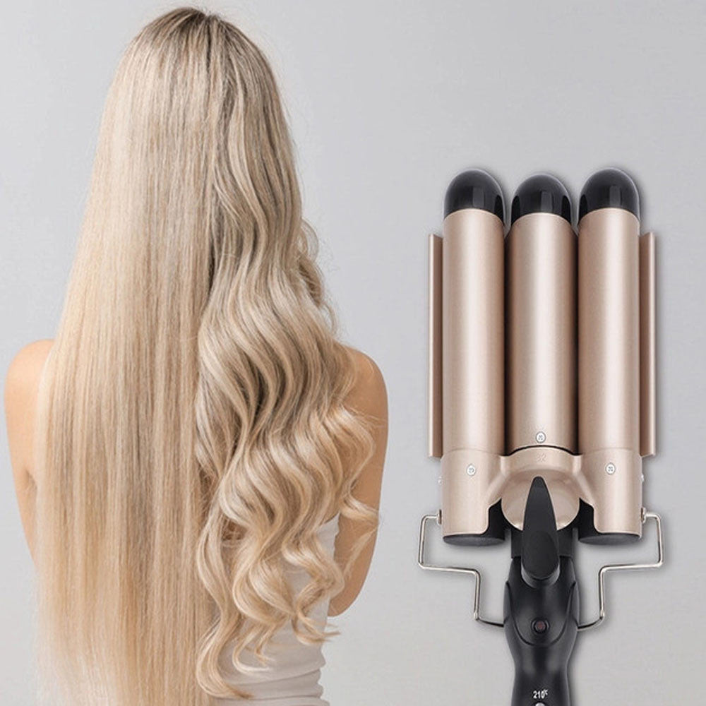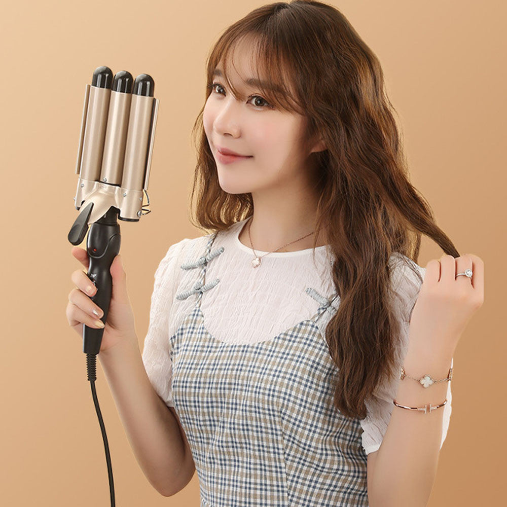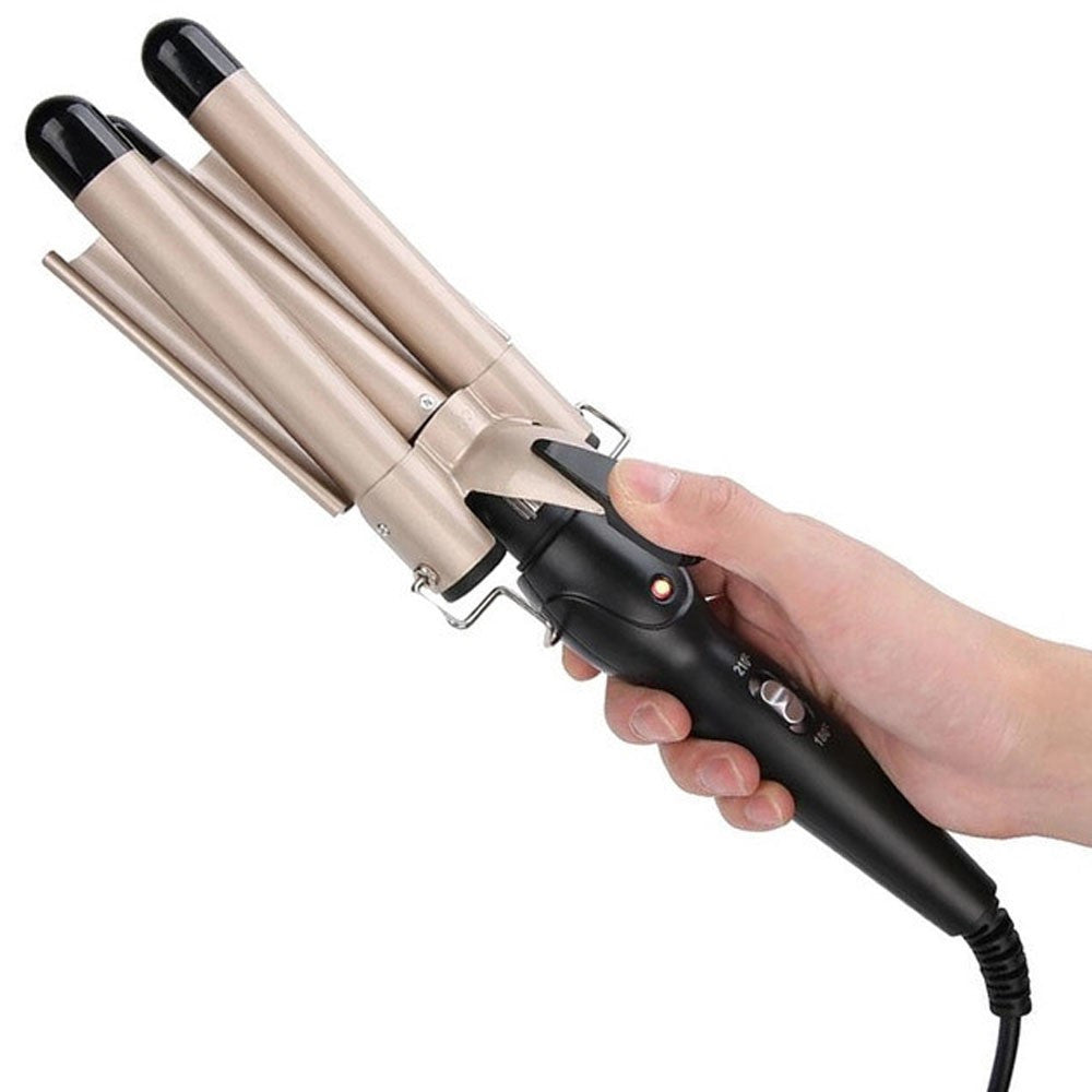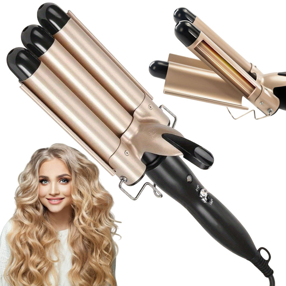 Плойка потрійна 90Вт, від мережі, GM 1956, Золотистий / Плойка хвиля / Плойка для волосся / Щипці для завивки волосся