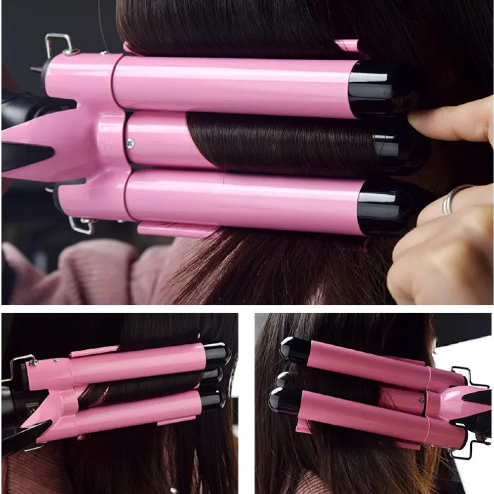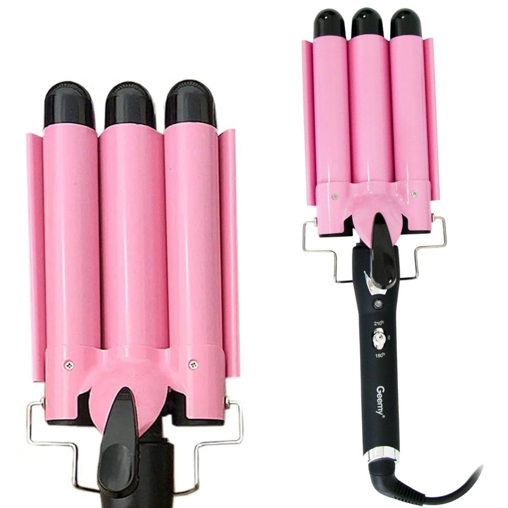 Плойка потрійна 90Вт, від мережі, GM 1956, Рожевий / Плойка хвиля / Плойка для волосся / Щипці для завивки волосся
