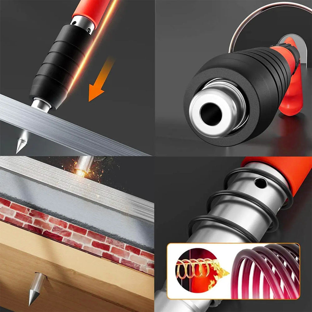 Сталевий цвяхозабивач - це професійний інструмент, який ідеально підходить для виконання будівельних, обробних і ремонтних робіт. З його допомогою ви легко та швидко закріпите цвяхи на різних поверхнях, включаючи дерево, пластик та гіпсокартон.Він відрізняється простотою використання, мінімальною вібрацією та зниженою стомлюваністю користувача при тривалому застосуванні.