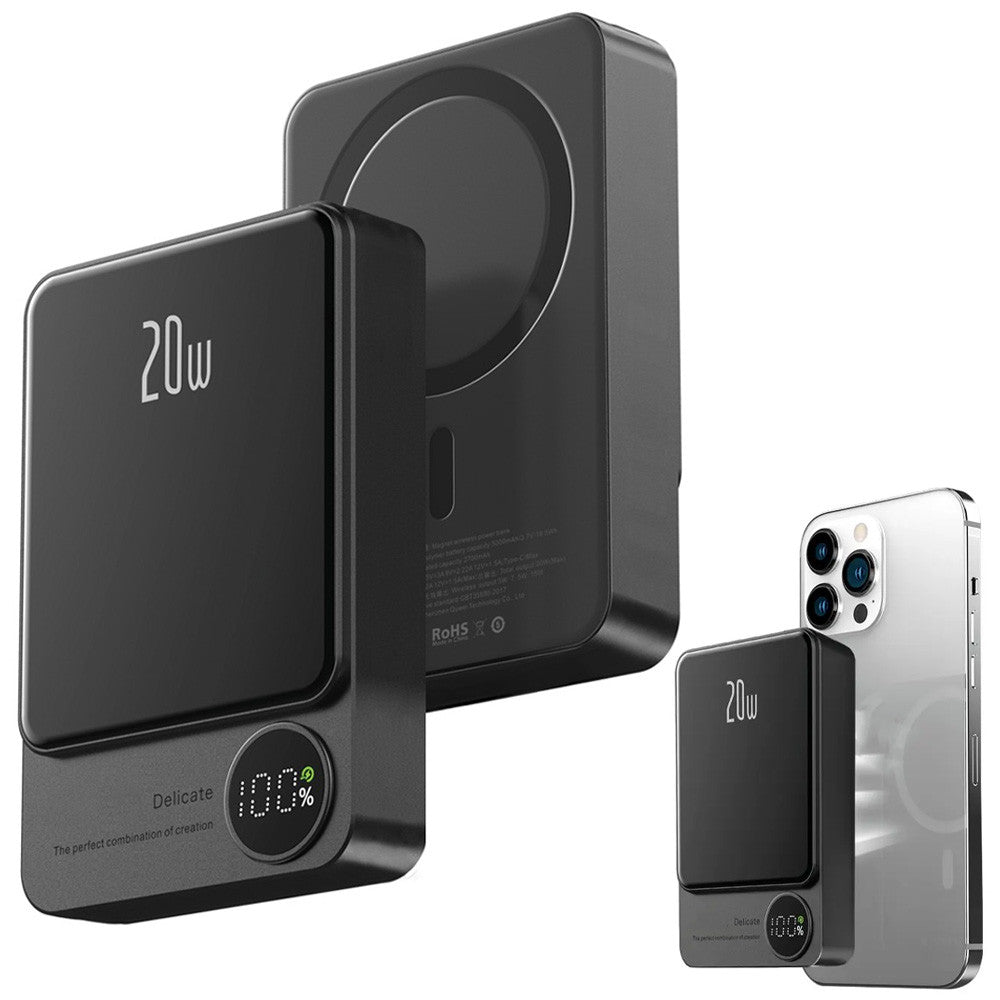 Повербанк бездротовий 20W, 10000 mAh, MagSafe, Чорний / Магнітний павербанк / УМБ / Портативний повер банк