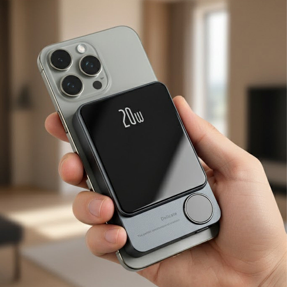 Повербанк бездротової MagSafe Power Bank 10000 mAh - це компактний і потужний портативний пристрій, призначений для заряджання мобільних пристроїв, сумісний з технологією MagSafe. Обладнаний технологією MagSafe для надійного та зручного кріплення до сумісних пристроїв. З потужністю 20 Вт цей повербанк забезпечує швидку зарядку вашого пристрою, що дозволяє заощаджувати час.