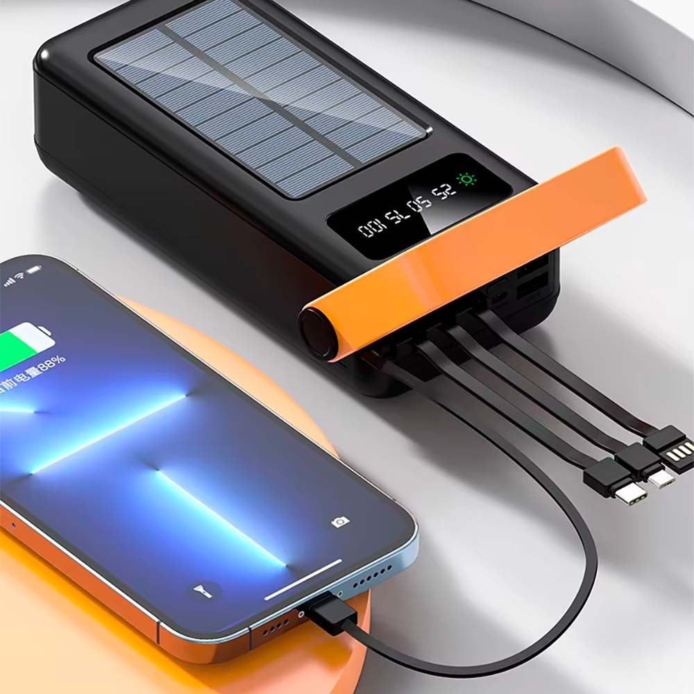 Повербанк 50000мАч на сонячній батареї з перехідниками, YM-635CX, Чорний / Зовнішній акумулятор / Павербанк