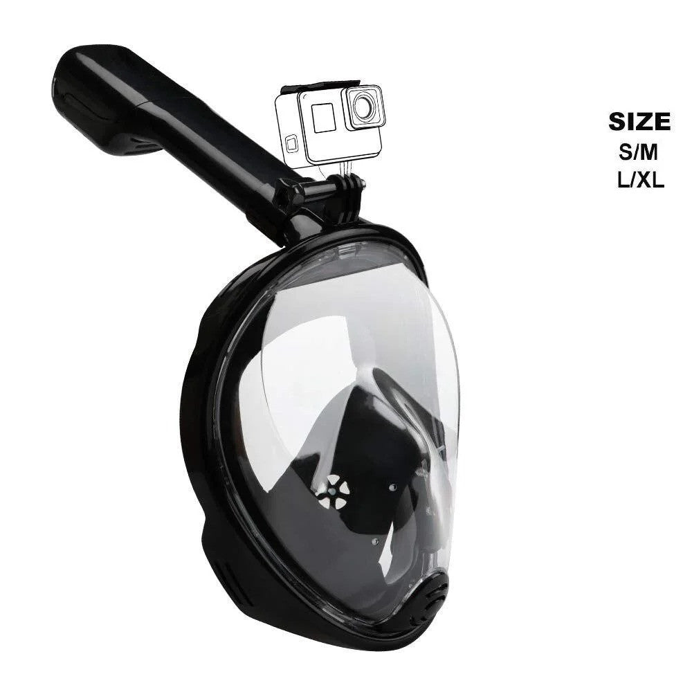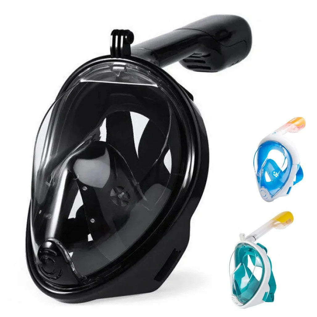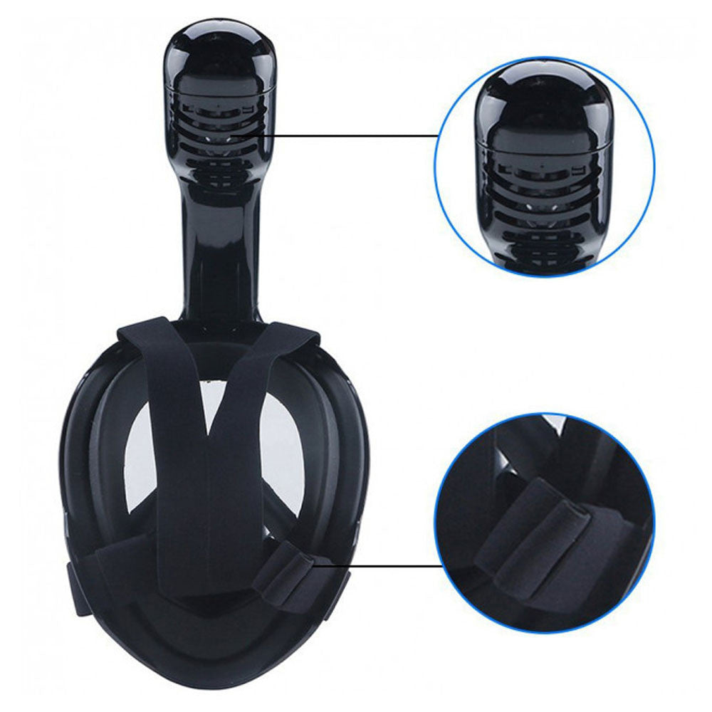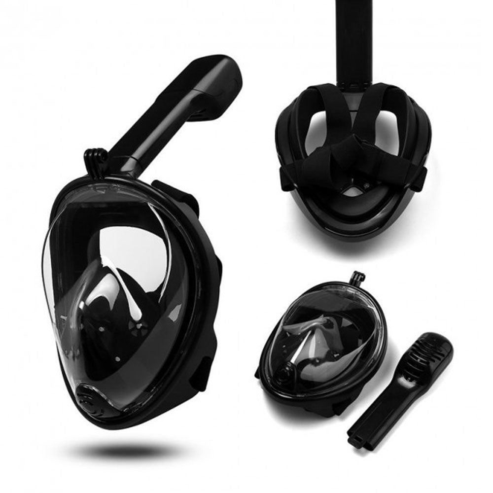 Повна панорамна маска для підводного плавання / Маска для снорклінга Чорний L/XL
