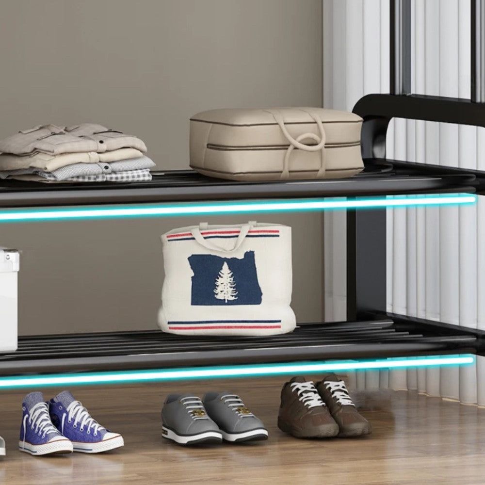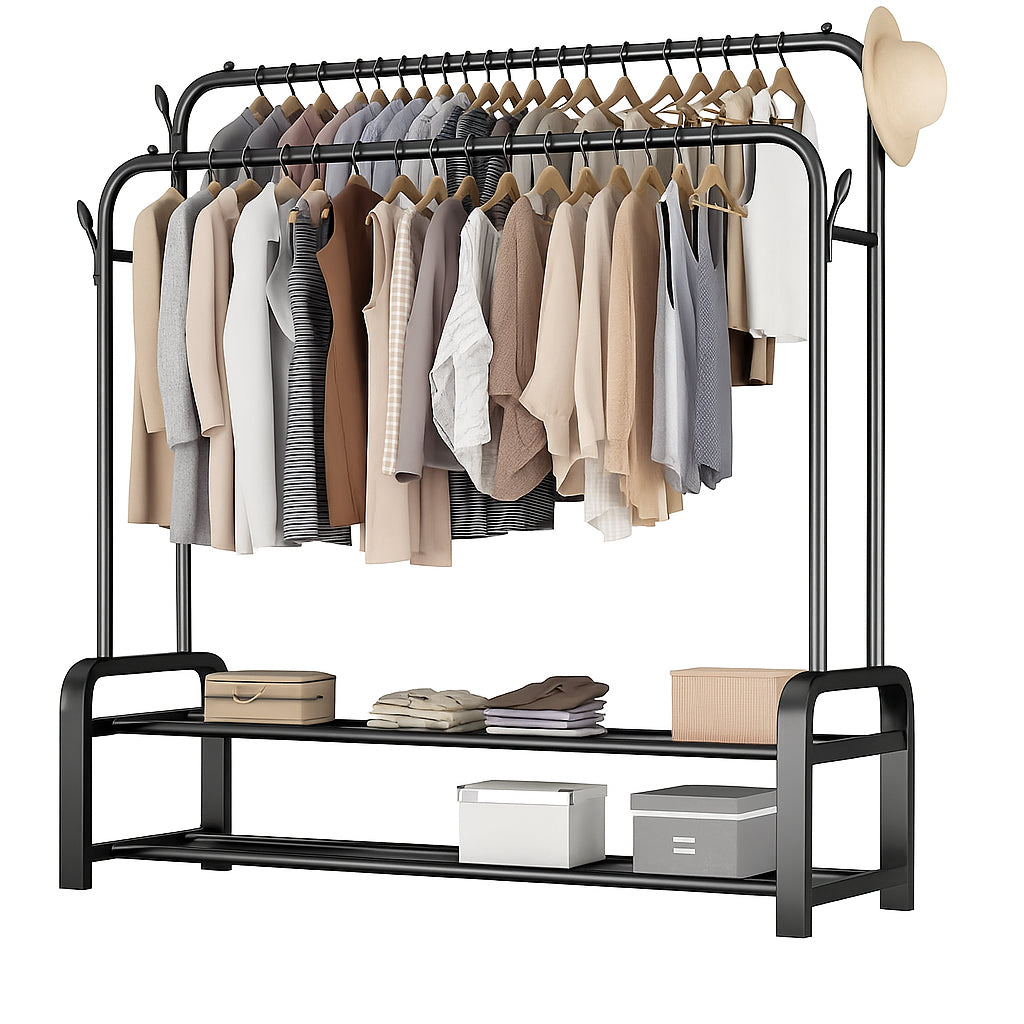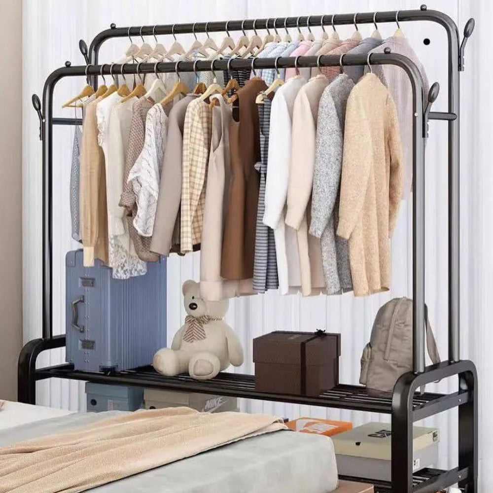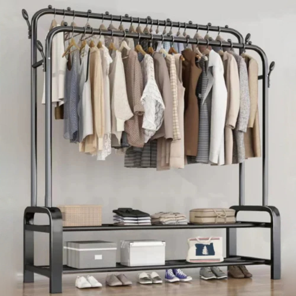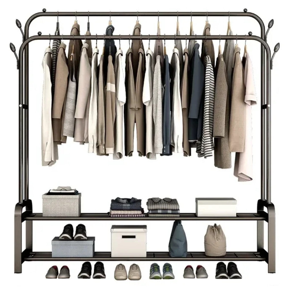 Вішалка для одягу з двома полицями забезпечує зручне та компактне зберігання одягу та взуття.