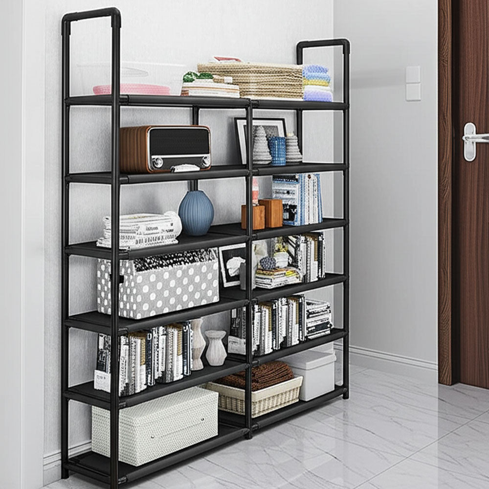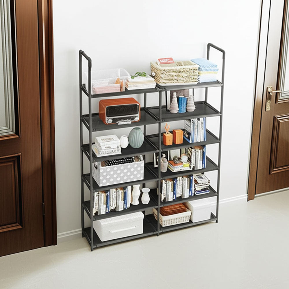 Полиця для взуття 6 ярусів, 115x79x21см, Чорний / Стелаж для взуття / Підставка для взуття / Полиця для підлоги