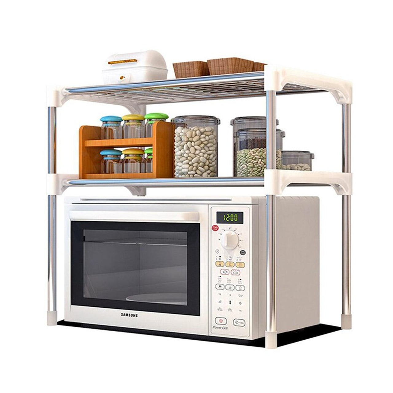 Щоб заощадити місце та додати приладдя для організації простору пропонуємо полицю органайзер для мікрохвильової печі MINGXUAN. Міцний настільний стелаж для мікрохвильової печі або іншої побутової техніки. Каркас виконаний із металевих трубок, з'єднаних пластиковими кріпленнями.