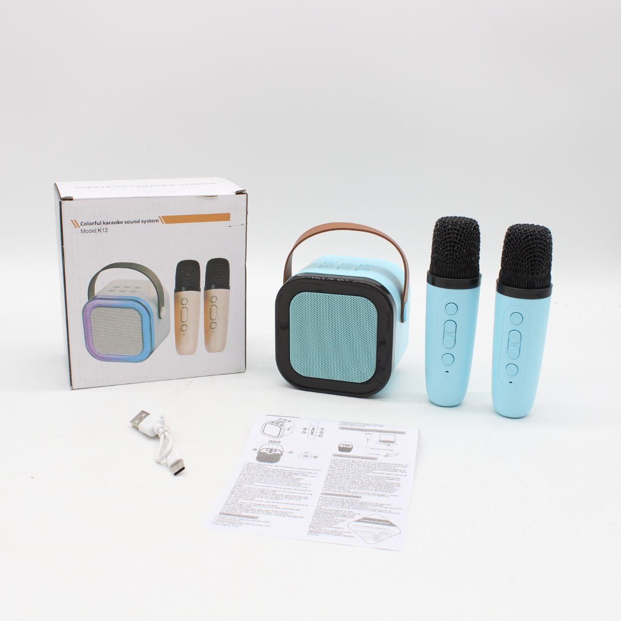 Портативна колонка-караоке з 2 мікрофонами К12, Блакитний / Бездротовий мікрофон з колонкою з підсвічуванням RGB