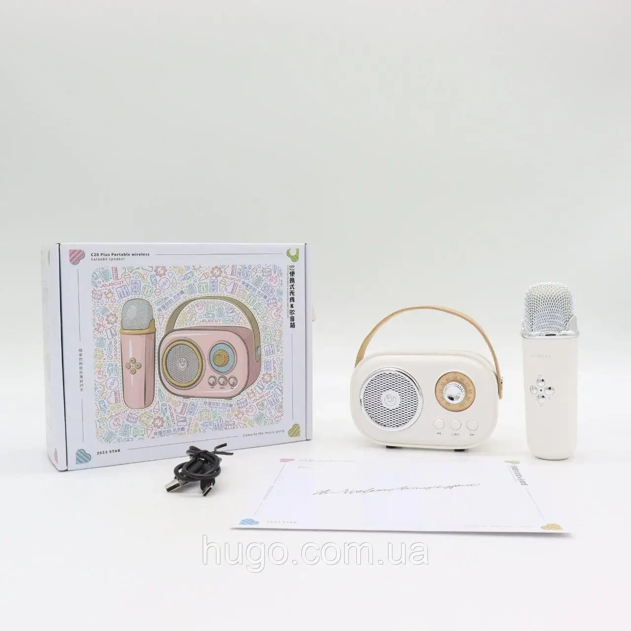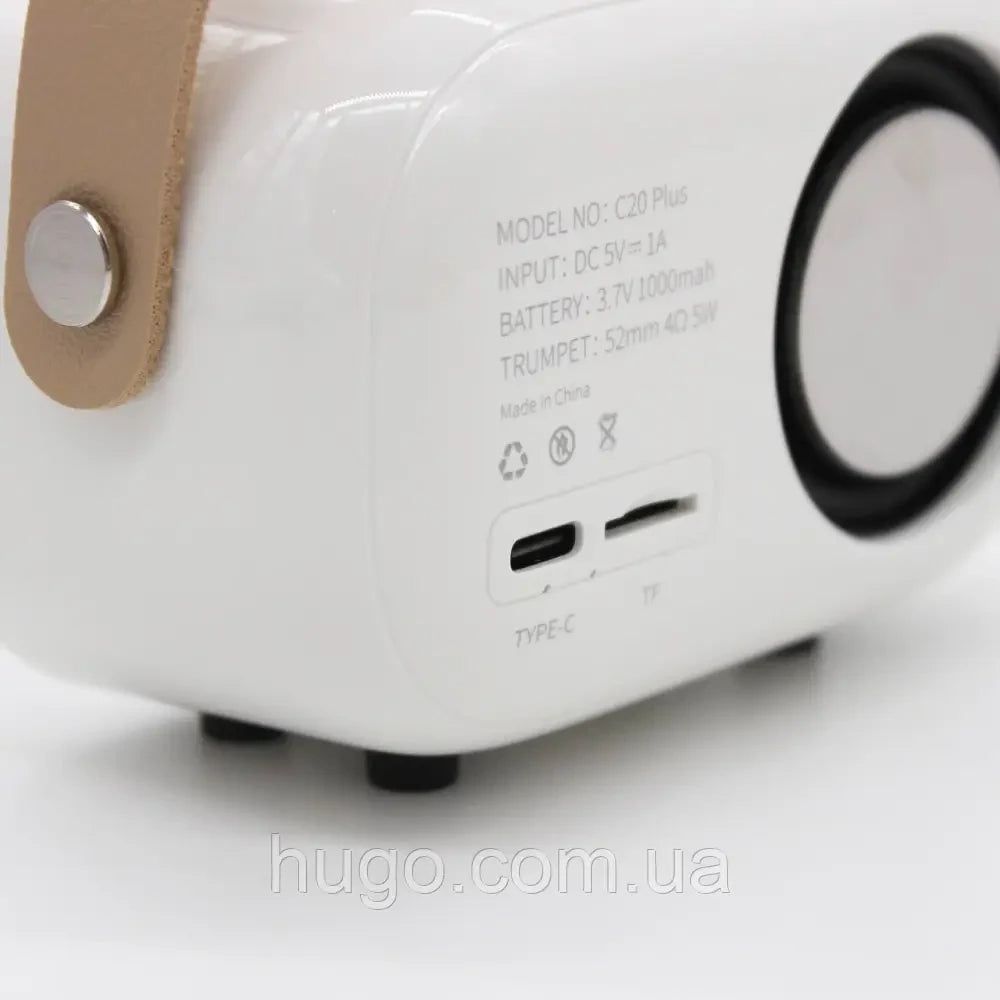 Колонка має широкий функціонал, підтримує Bluetooth 5.0, FM і USB Card, а значить ви можете слухати музику зі свого телефону або флешки, підключитися до улюбленої радіостанції. Крім цього, акустика дає можливість влаштувати незабутню караоке-вечірку завдяки невеликому, але потужному мікрофону, акумулятор якого розрахований на 2 години роботи. При цьому, пристрій має привабливий ретро-дизайн, завдяки чому таку колонку можна презентувати як подарунок до свята і дорослої, і дитини.