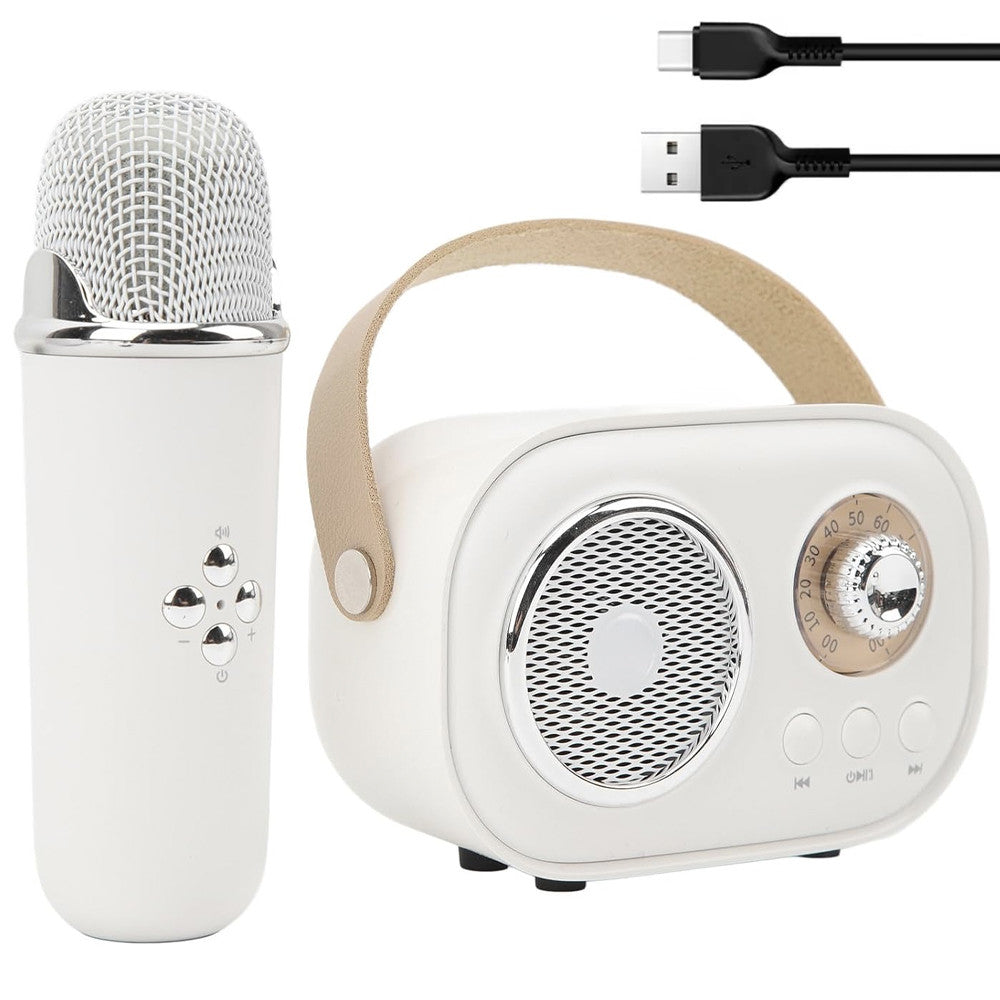 Портативна Bluetooth колонка для караоке з мікрофоном на акумуляторі, Біла / Акустична система для караоке