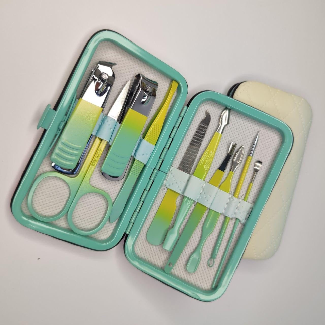 Цей манікюрний набір виготовлений із високоякісної нержавіючої сталі, що гарантує його міцність, стійкість до корозії та тривалий термін служби. Він стане вашим надійним помічником у підтримці краси та здоров'я ваших нігтів.